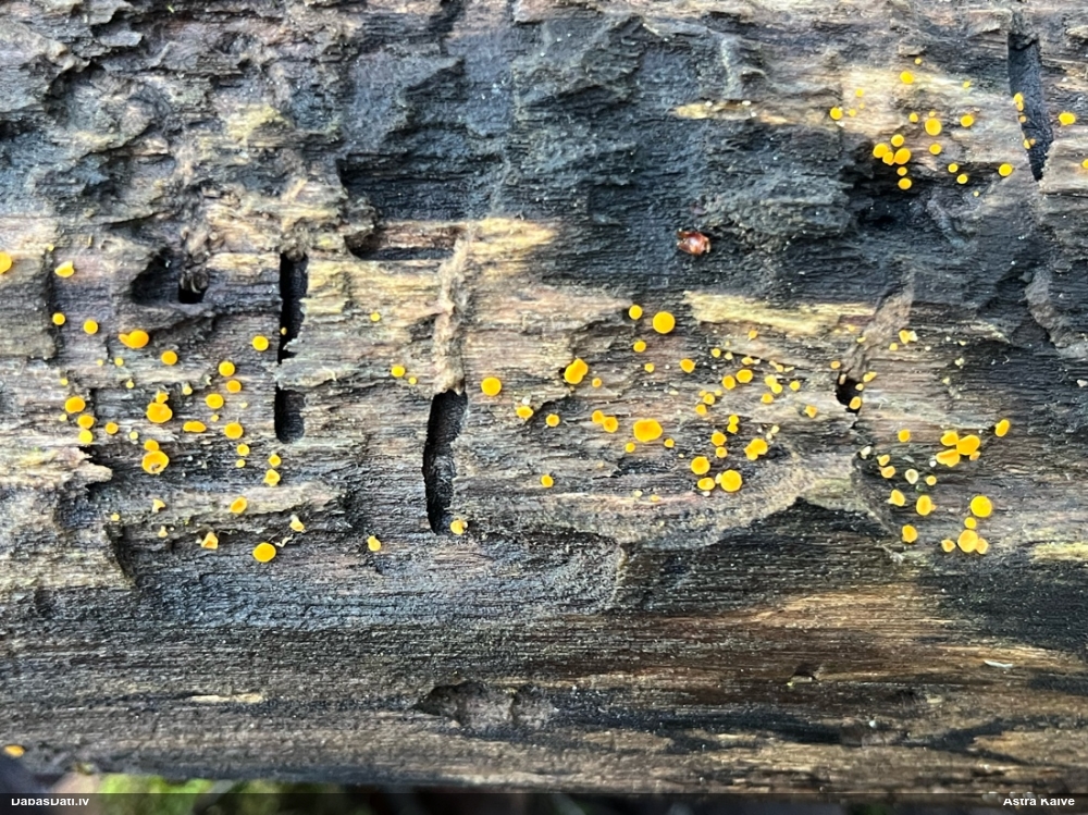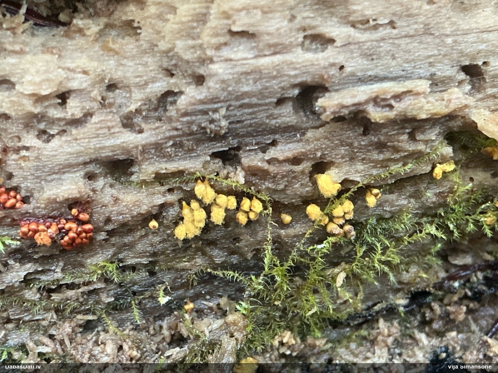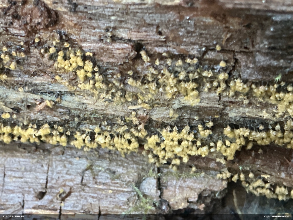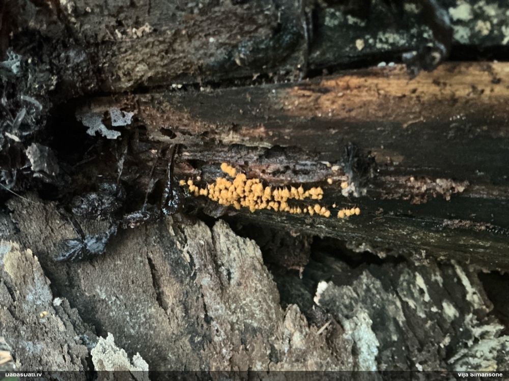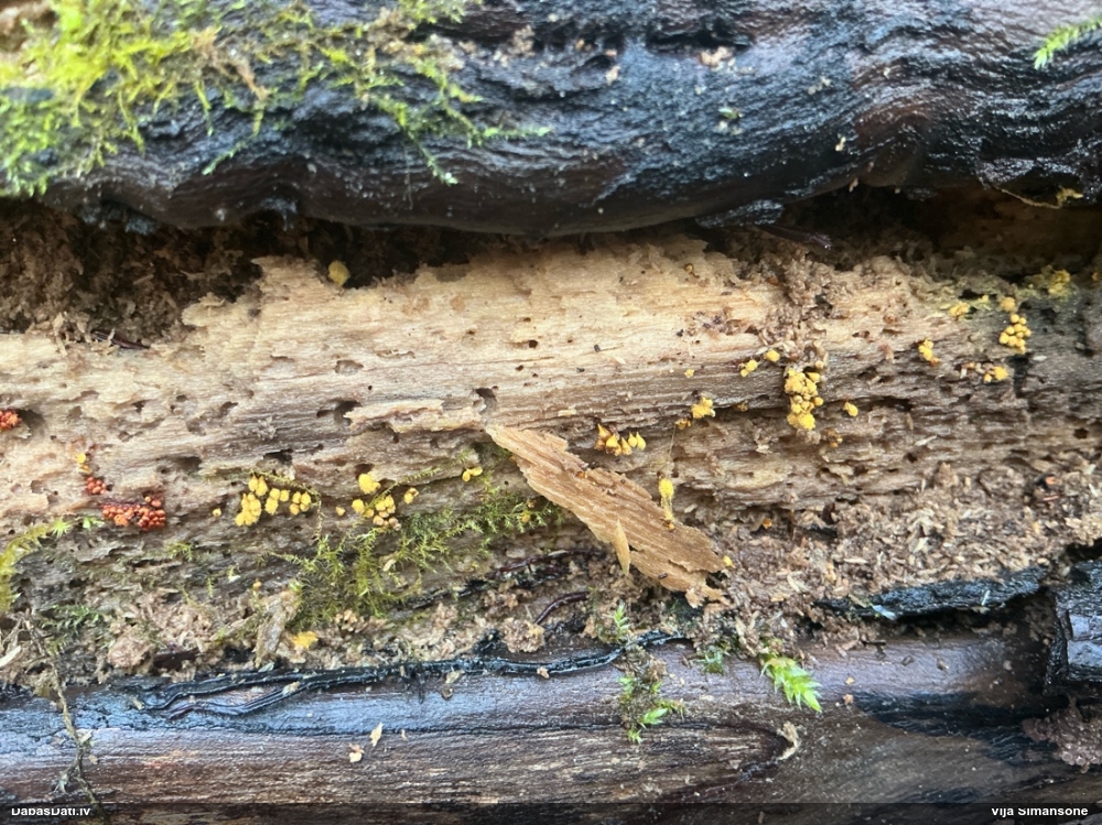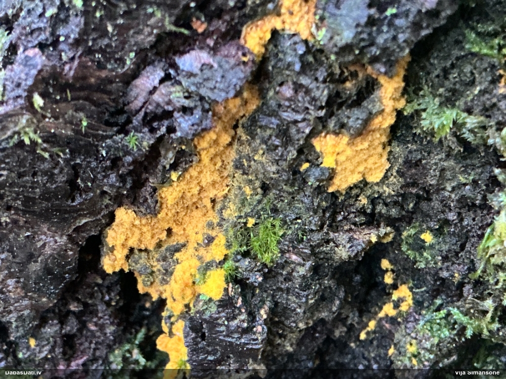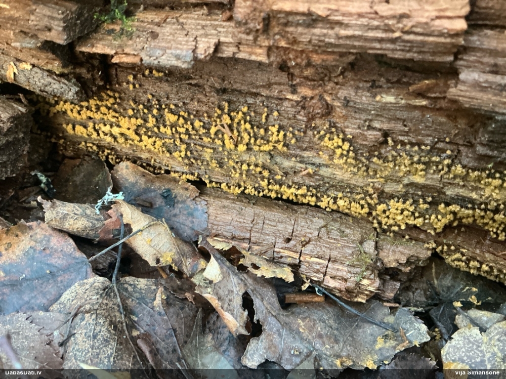 Jā, es par Tavu jau biju pieņēmusi lēmumu par Physarum oblatum, kam ir daudzveidīgas izpausmes, bet pirms gala vārda vēl paņēmu Maritas, kas šķita līdzīgs, bet ar baltu kāju, kas gan neiederētos pie oblatum. Nu un tā jūsu kopdarbs kopā ar Nannengu aizveda līdz rezultātam :)). Šitie dzeltenie ir Dievišķi no skata, bet velnišķīgi priekš noteikšanas.
