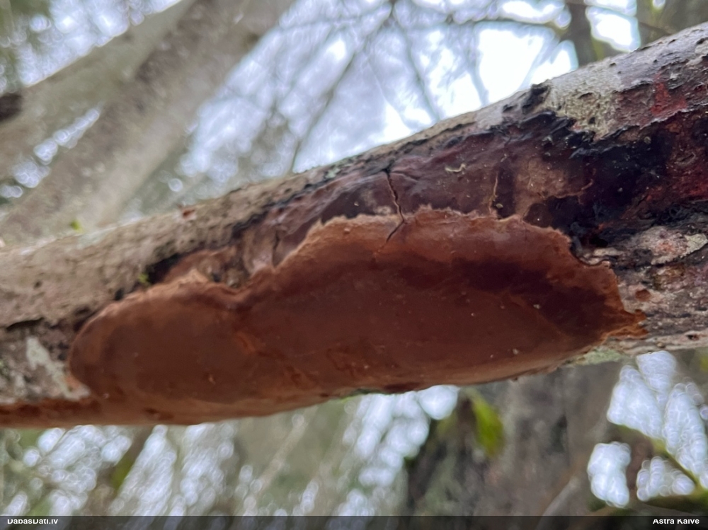 Žākle ābelei nebija traumēta, bet tā kā koks ir ļoti vecs, varbūt mizas virsējās nedzīvās plēksnes rada beigtā koka efektu. Vai arī šī gļotsēne aug arī uz dzīviem kokiem :)
