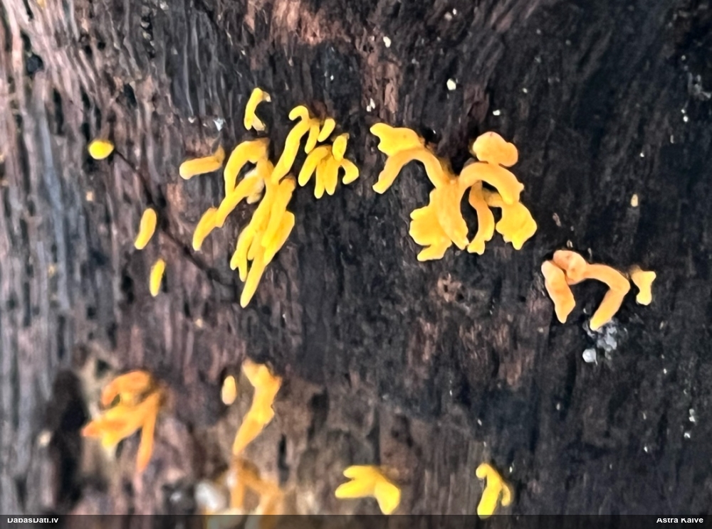 Paldies, Renāt, interesantas versijas. Man šķiet, ka tās abas tā kā vairāk uz augsnes aug (vismaz Bryoclavula dryalisepiplutea vienīgā atradne Eiropā (Nīderlandē) ir uz augsnes). Šī uz kritalas auga (vainīgs, neesmu piezīmēs aprakstījis substrātu).