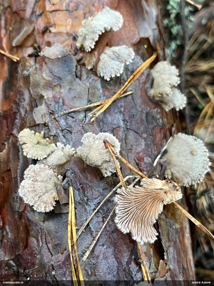Man ir paraugs. Es to šodien apskatīšu. atradu uz skujkoka.