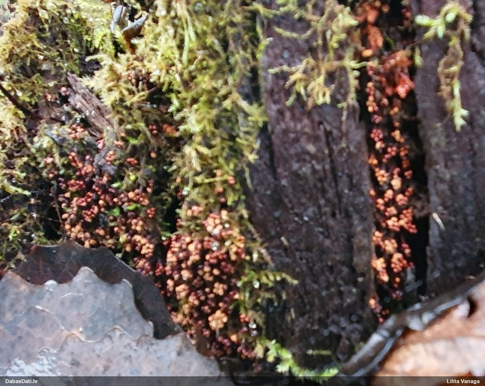 Jā, auga uz sūnām apaugušas kritalas, ar tām sporām - ļoti grūti kaut ko jēdzīgu saskatīt .