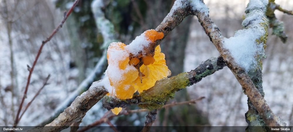 Žākle ābelei nebija traumēta, bet tā kā koks ir ļoti vecs, varbūt mizas virsējās nedzīvās plēksnes rada beigtā koka efektu. Vai arī šī gļotsēne aug arī uz dzīviem kokiem :)