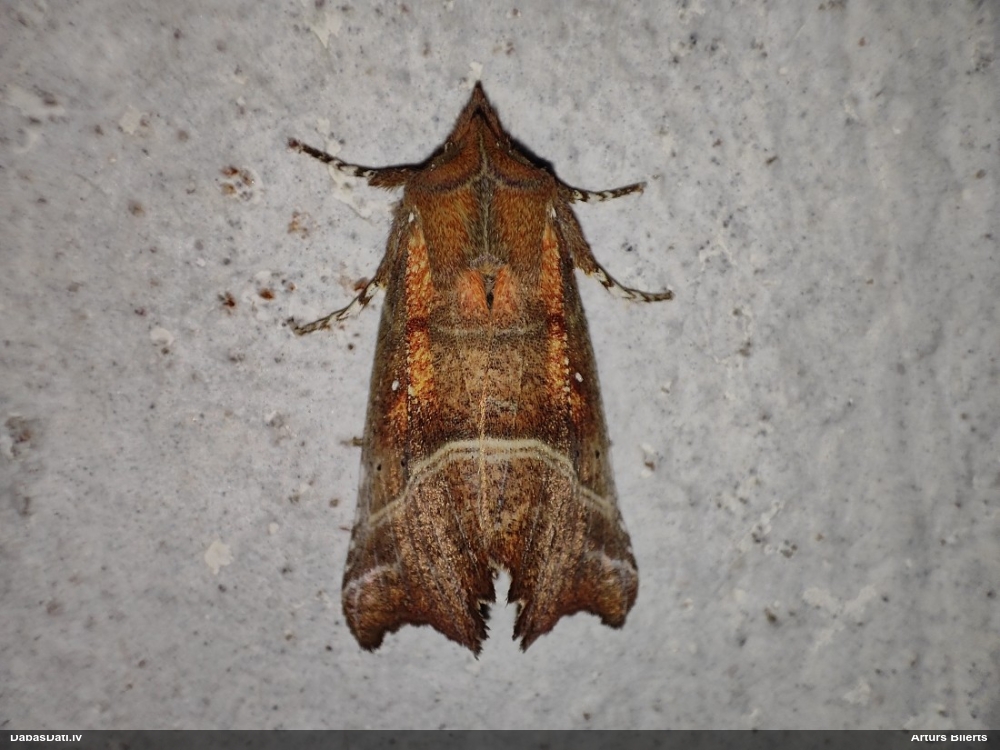 Apsveicu, Marita! Ļoti veiksmīgs atradums! Un labi, ka paraugs nonāca pie manis, jo skaldnes izrādījās ļoti tumšas (malas raksts gandrīz nesaskatāms), nācās caurskatīt vairākus noteicējus, un labi, ka paraugs bija pa rokai pašai apskatīt.