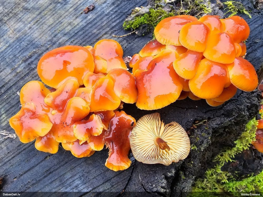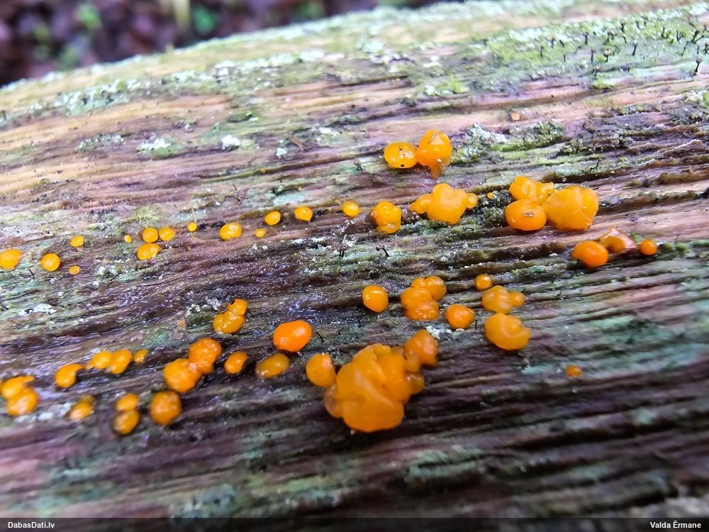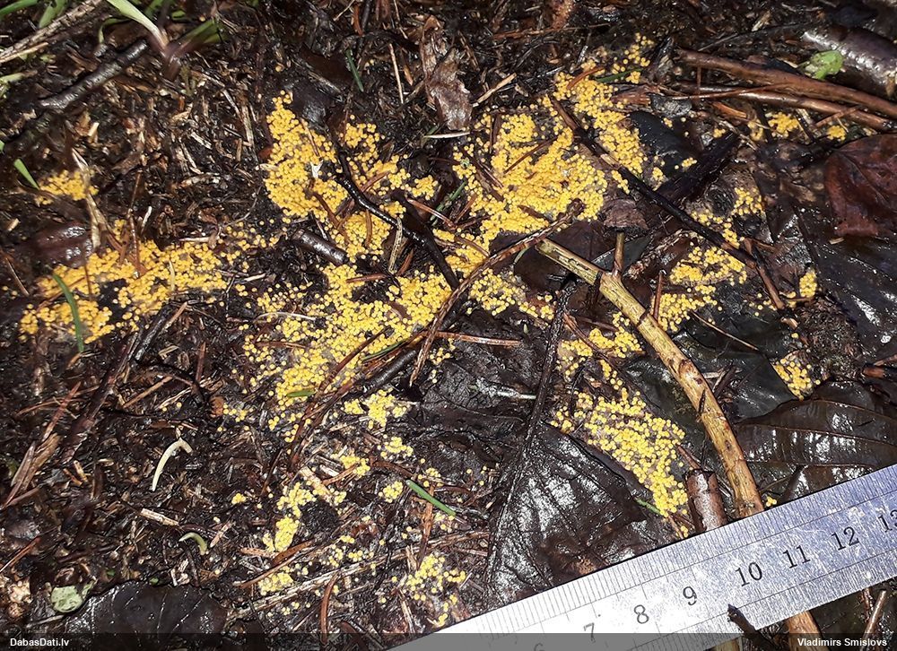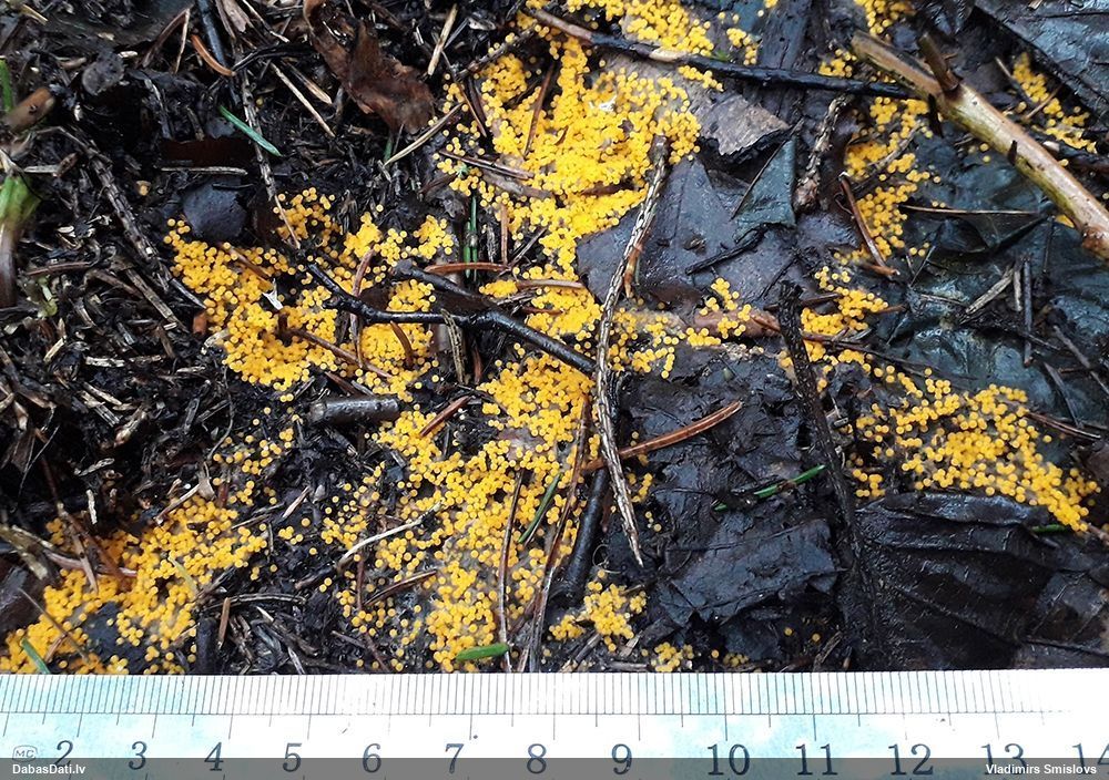 Jā, es par Tavu jau biju pieņēmusi lēmumu par Physarum oblatum, kam ir daudzveidīgas izpausmes, bet pirms gala vārda vēl paņēmu Maritas, kas šķita līdzīgs, bet ar baltu kāju, kas gan neiederētos pie oblatum. Nu un tā jūsu kopdarbs kopā ar Nannengu aizveda līdz rezultātam :)). Šitie dzeltenie ir Dievišķi no skata, bet velnišķīgi priekš noteikšanas.