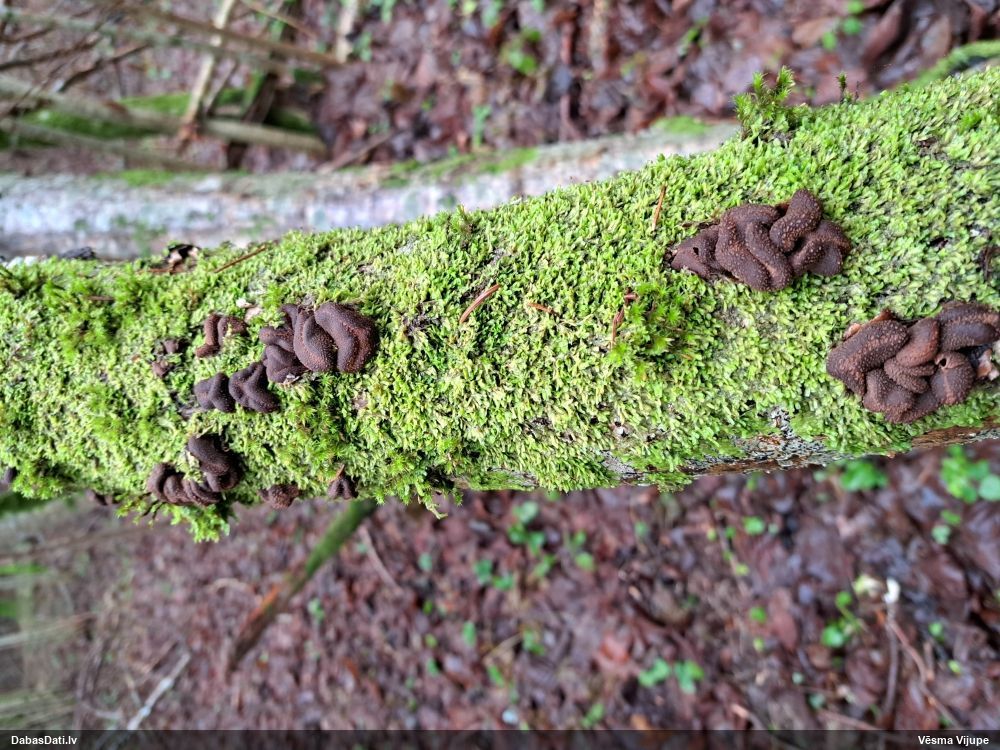 Paldies, Renāt, interesantas versijas. Man šķiet, ka tās abas tā kā vairāk uz augsnes aug (vismaz Bryoclavula dryalisepiplutea vienīgā atradne Eiropā (Nīderlandē) ir uz augsnes). Šī uz kritalas auga (vainīgs, neesmu piezīmēs aprakstījis substrātu).