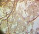 Cik interesanti! Ja es pareizi saprotu, tad kapilīcijs ir tie baltie "krikumi", kas savienoti ar tieviem pavedieniem jeb kapilīcijs ir ar neregulāriem baltiem mezgliem. Tādā gadījumā tai jābūt pumpurītei (Physarum sp.), kaut arī piekrītu, ka no ārpuses izskatās kā Diderma/Didymium. Sporas ir ar vienu pusi gaišāku - svarīga īpaša pazīme. Ar tādiem parametriem (un divām perīdija kārtām) ir zināma Physarum diderma, bet tai sporas ir mazākas (10-12 mkm) un tā aug uz beigtas koksnes. Ja tas ir dzīvs koks, tad vēl jāizskata kādi dzīvo koku varianti.