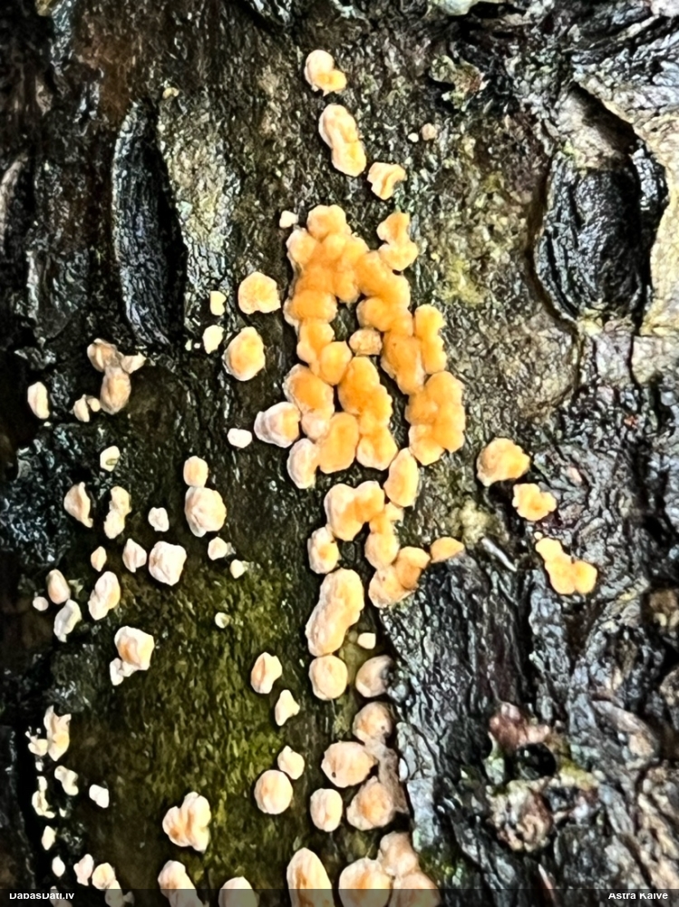 Jā, es par Tavu jau biju pieņēmusi lēmumu par Physarum oblatum, kam ir daudzveidīgas izpausmes, bet pirms gala vārda vēl paņēmu Maritas, kas šķita līdzīgs, bet ar baltu kāju, kas gan neiederētos pie oblatum. Nu un tā jūsu kopdarbs kopā ar Nannengu aizveda līdz rezultātam :)). Šitie dzeltenie ir Dievišķi no skata, bet velnišķīgi priekš noteikšanas.
