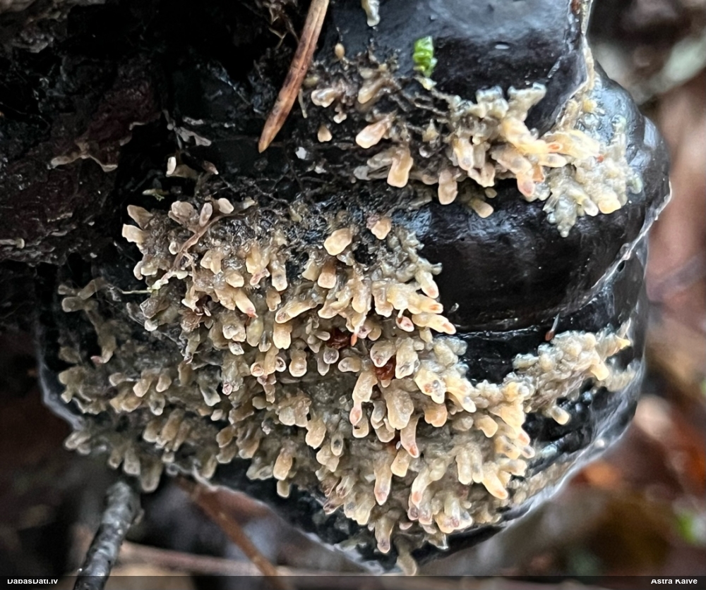 Paldies, Renāt, interesantas versijas. Man šķiet, ka tās abas tā kā vairāk uz augsnes aug (vismaz Bryoclavula dryalisepiplutea vienīgā atradne Eiropā (Nīderlandē) ir uz augsnes). Šī uz kritalas auga (vainīgs, neesmu piezīmēs aprakstījis substrātu).