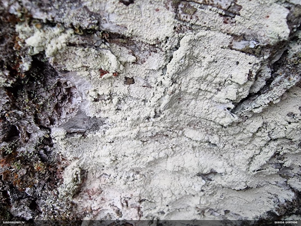 Šis bija neparasts paraugs. Noklāts ar biezu pelējuma kārtu un likās bezcerīgs vai vispār nav gļotsēne. Mikroskopija rādīja nepārprotamas gļotsēņu sporas. Šketinot tālāk, varēja tikt pat līdz jaunai sugai.