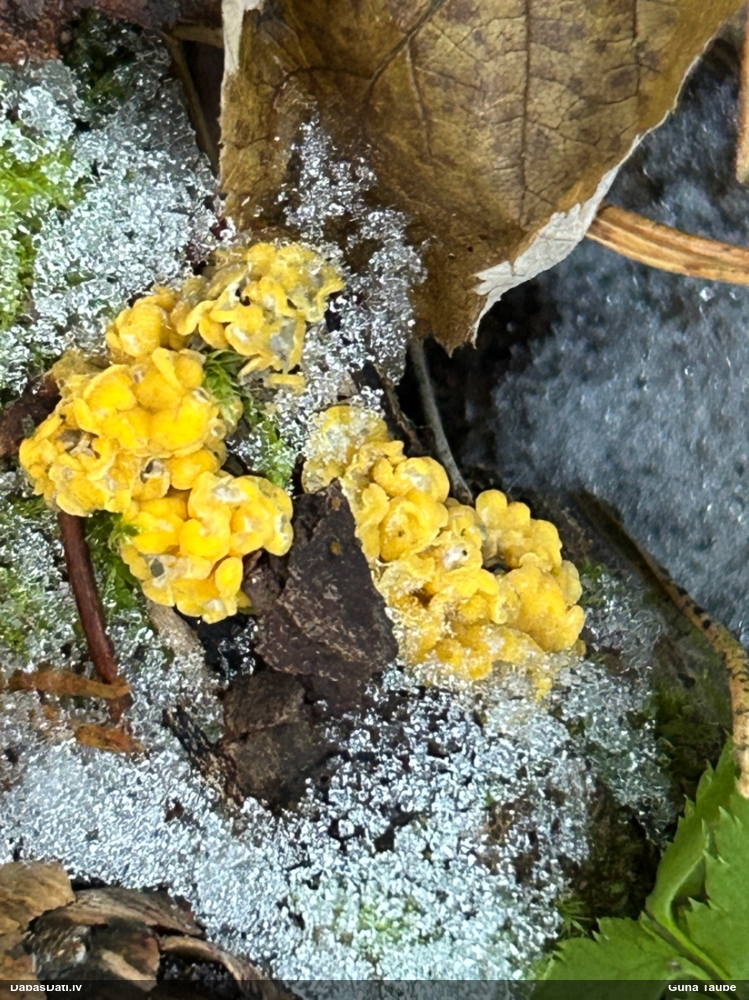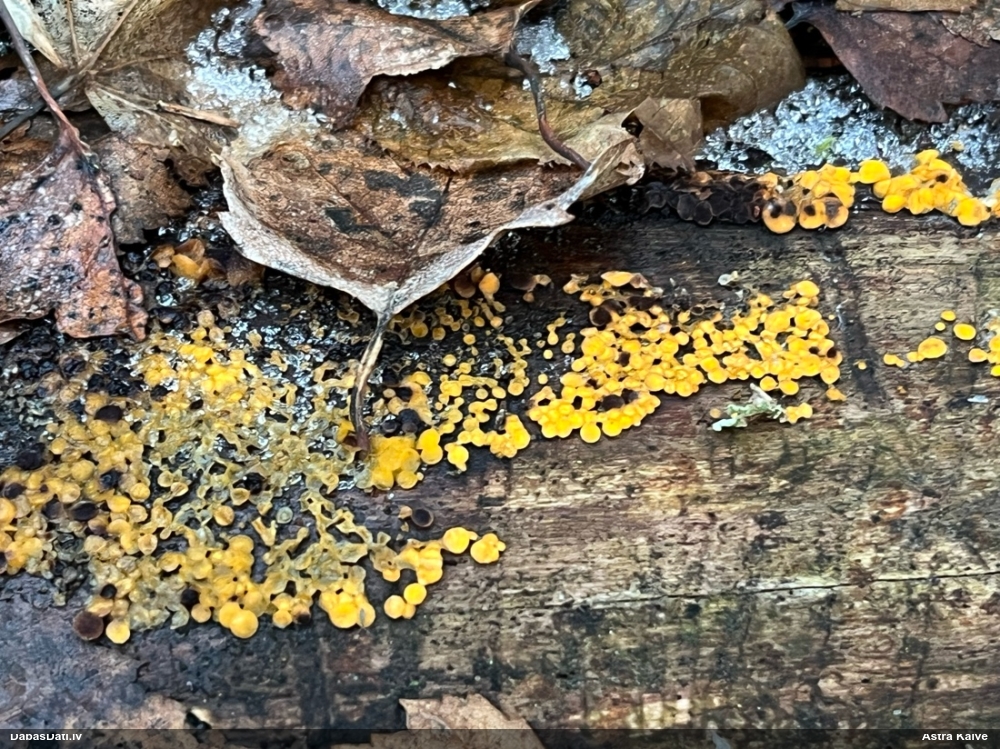 Jā, es par Tavu jau biju pieņēmusi lēmumu par Physarum oblatum, kam ir daudzveidīgas izpausmes, bet pirms gala vārda vēl paņēmu Maritas, kas šķita līdzīgs, bet ar baltu kāju, kas gan neiederētos pie oblatum. Nu un tā jūsu kopdarbs kopā ar Nannengu aizveda līdz rezultātam :)). Šitie dzeltenie ir Dievišķi no skata, bet velnišķīgi priekš noteikšanas.