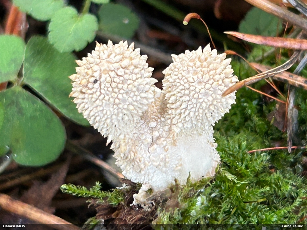 Šai es veltīju dienu ;). Pilnīgā izmisumā, nespējot izšķirties starp parasto P.leucophaeum un pasaulē reto P.robustum (Latvijā skaitītos 2. atradne; pirmo noteica Adamonīte no sena vākuma), ieliku lielajā FB grupā, kur diviem uzticamākajiem pētniekiem katram bija savs viedoklis ;)). Edvīns Norvēģijā P.robustum nav akceptējis, lai arī jaunībā pats tādu esot noteicis (netic savai noteikšanas pareizībai). Novērojuma foto un diskusija te: https://www.facebook.com/groups/SlimeMold/permalink/4130272293899264/