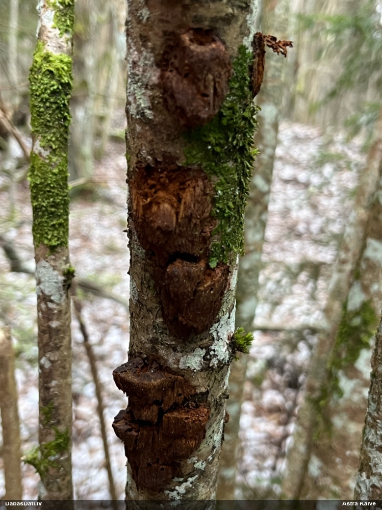 Marina, īpaši novērojumiem, ko grūti noteikt, vajag pierakstīt, uz kā auga - vai tas ir dzīvs koks? Varbūt zināma koka suga?