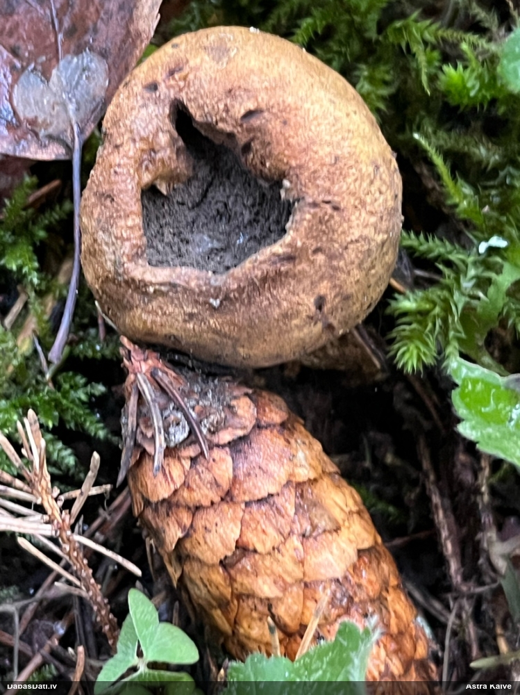 Man ir paraugs. Es to šodien apskatīšu. atradu uz skujkoka.