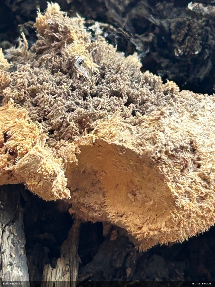 Šai es veltīju dienu ;). Pilnīgā izmisumā, nespējot izšķirties starp parasto P.leucophaeum un pasaulē reto P.robustum (Latvijā skaitītos 2. atradne; pirmo noteica Adamonīte no sena vākuma), ieliku lielajā FB grupā, kur diviem uzticamākajiem pētniekiem katram bija savs viedoklis ;)). Edvīns Norvēģijā P.robustum nav akceptējis, lai arī jaunībā pats tādu esot noteicis (netic savai noteikšanas pareizībai). Novērojuma foto un diskusija te: https://www.facebook.com/groups/SlimeMold/permalink/4130272293899264/