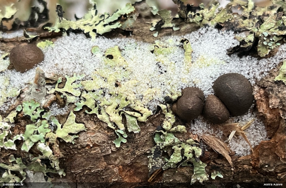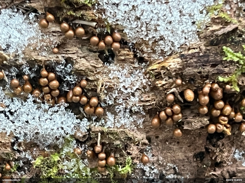 Nebija laika līdz galam rūpīgi izpētīt, bet P.diderma ir ticama versija (sporas mazliet lielākas, ja nav nobriedusi pilnvērtīgi), ja neskaita pseido/kolumellu - tāpēc papētīšu vēlāk vēl. Physarum ir noteikti.