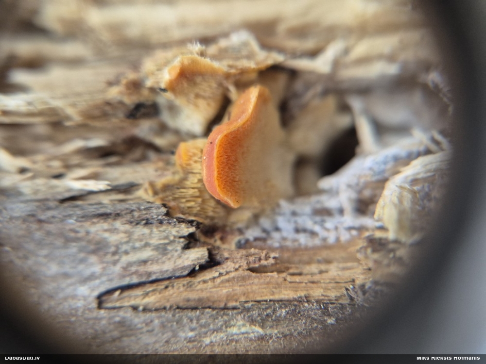 Atradu labu aprakstu. Tur teikts, ka P.diderma var būt kapilīcija mezgli, kas cieši salipuši, veidojot pseidokolumellu. Domāju, tā ir arī te. Rakstīts, ka aug arī uz mizas, neminot, vai dzīviem kokiem. Domāju, ka pretrunu nav, katrā ziņā šobrīd tā ir vienīgā un gana ticama versija.
