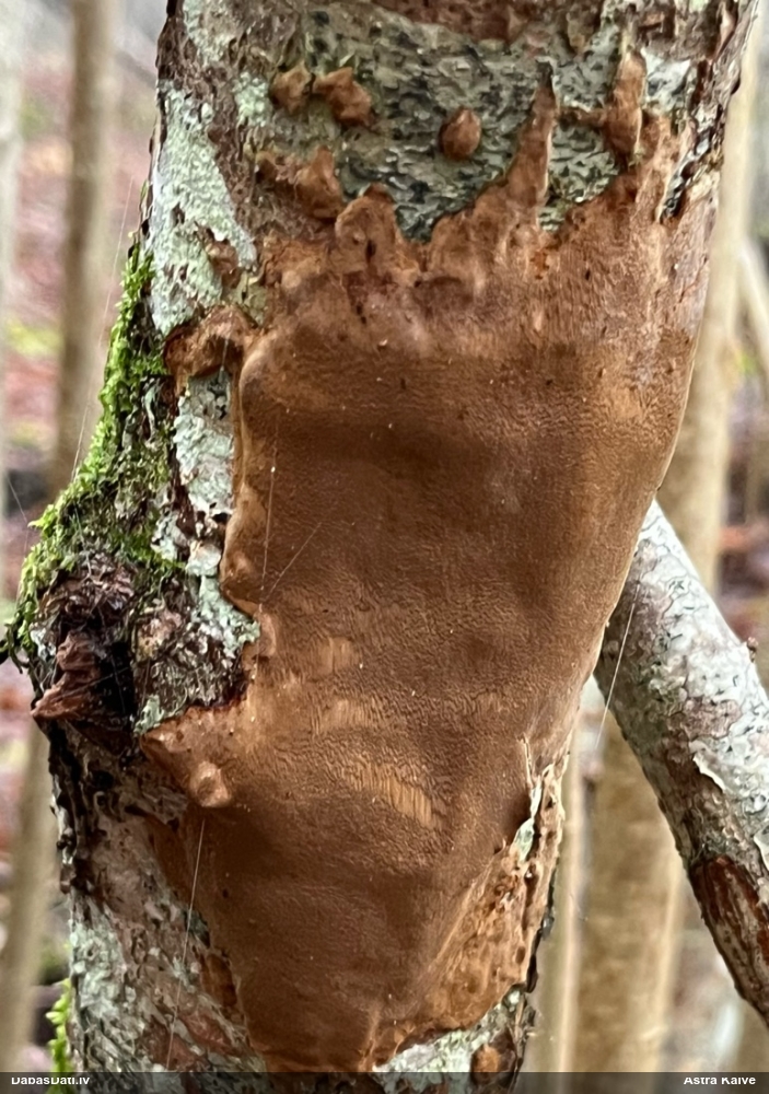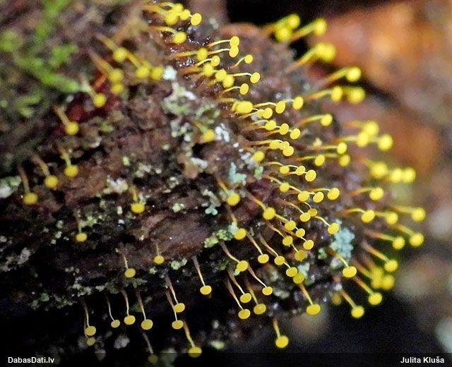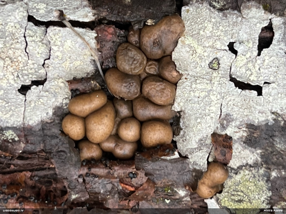 Atradu labu aprakstu. Tur teikts, ka P.diderma var būt kapilīcija mezgli, kas cieši salipuši, veidojot pseidokolumellu. Domāju, tā ir arī te. Rakstīts, ka aug arī uz mizas, neminot, vai dzīviem kokiem. Domāju, ka pretrunu nav, katrā ziņā šobrīd tā ir vienīgā un gana ticama versija.