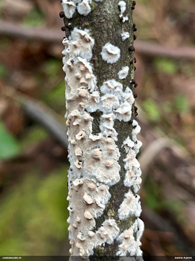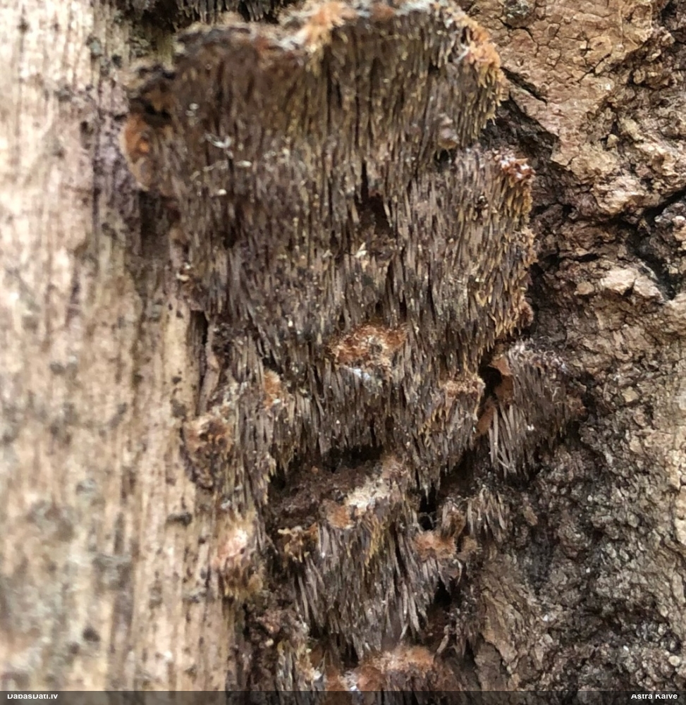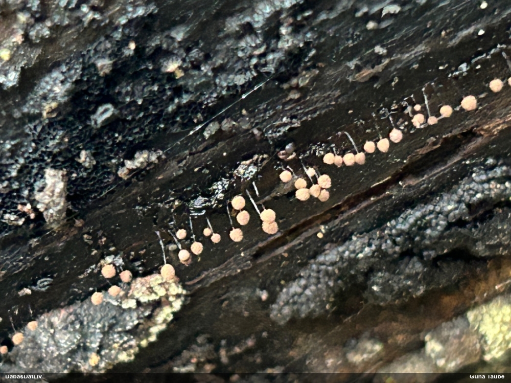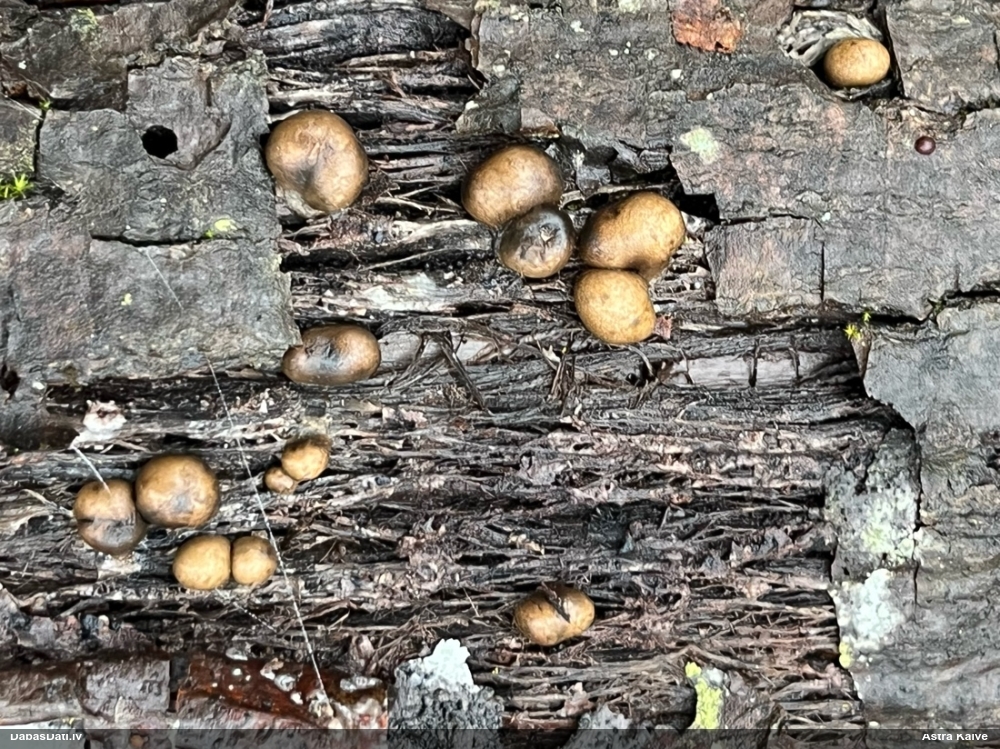Atradu labu aprakstu. Tur teikts, ka P.diderma var būt kapilīcija mezgli, kas cieši salipuši, veidojot pseidokolumellu. Domāju, tā ir arī te. Rakstīts, ka aug arī uz mizas, neminot, vai dzīviem kokiem. Domāju, ka pretrunu nav, katrā ziņā šobrīd tā ir vienīgā un gana ticama versija.