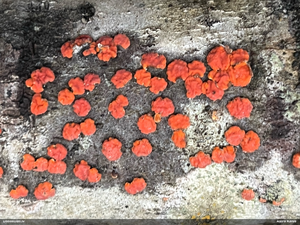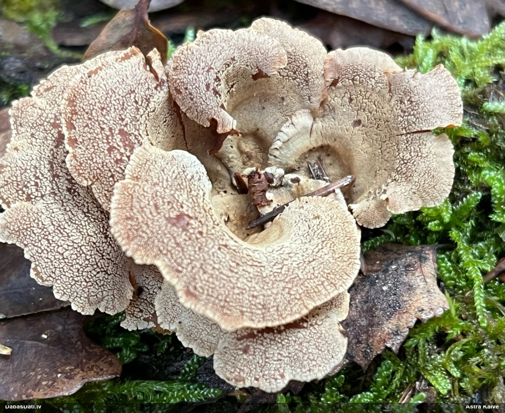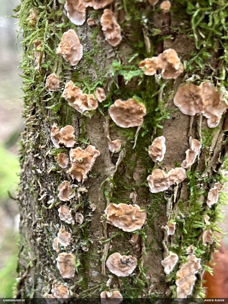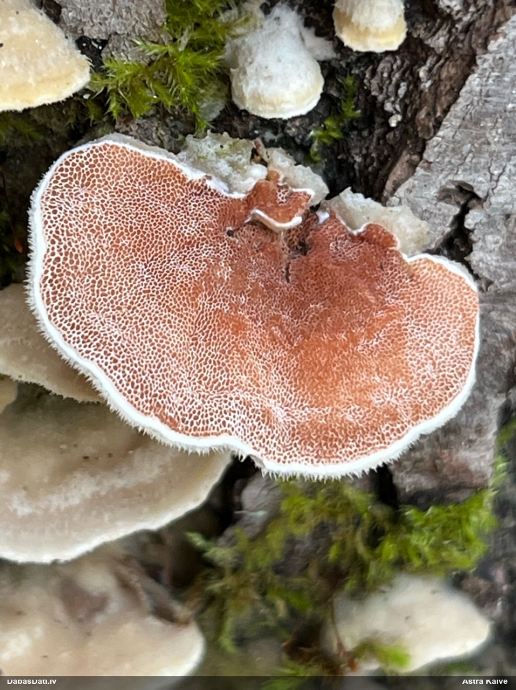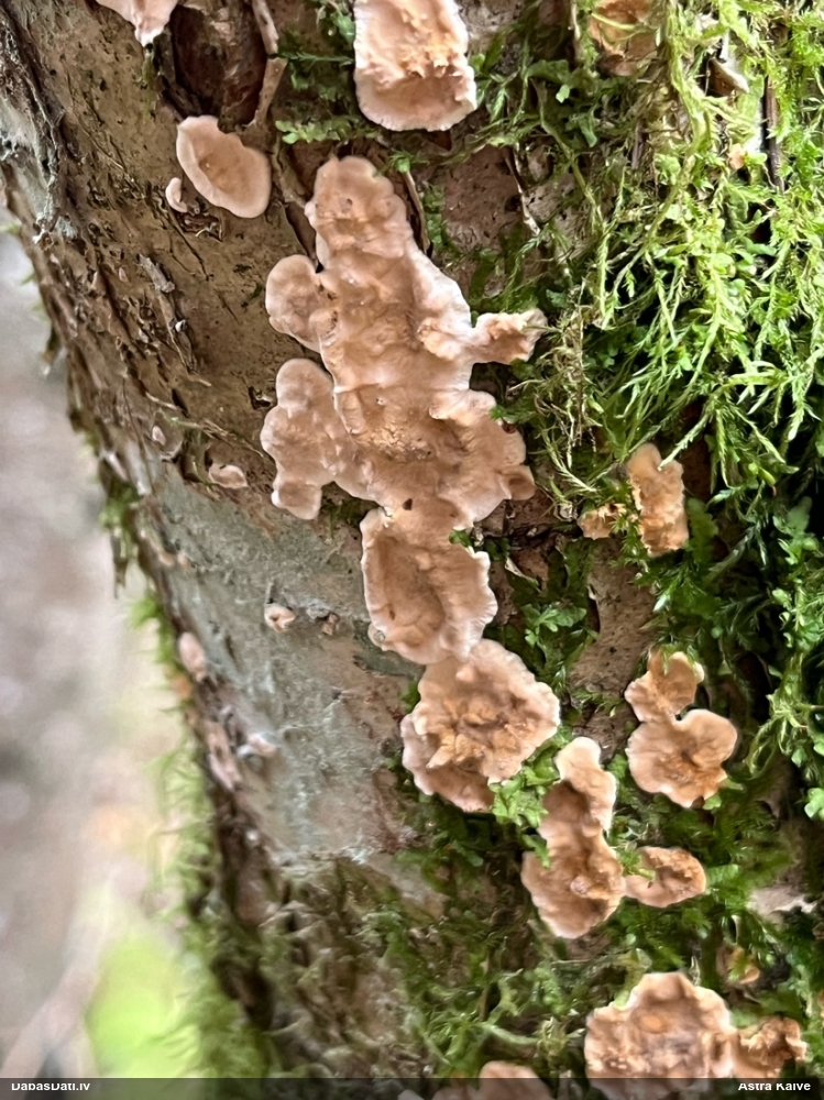 Atradu labu aprakstu. Tur teikts, ka P.diderma var būt kapilīcija mezgli, kas cieši salipuši, veidojot pseidokolumellu. Domāju, tā ir arī te. Rakstīts, ka aug arī uz mizas, neminot, vai dzīviem kokiem. Domāju, ka pretrunu nav, katrā ziņā šobrīd tā ir vienīgā un gana ticama versija.