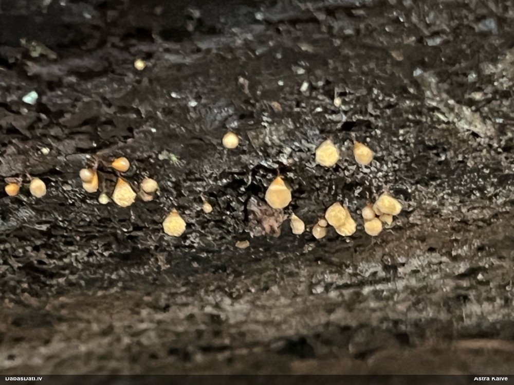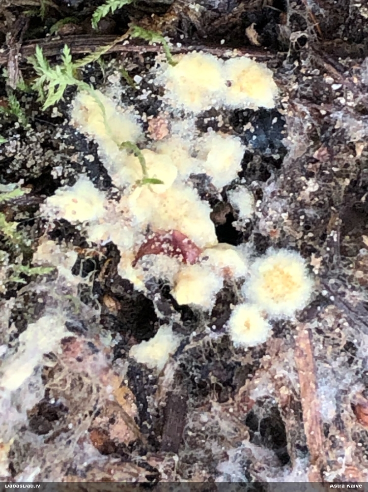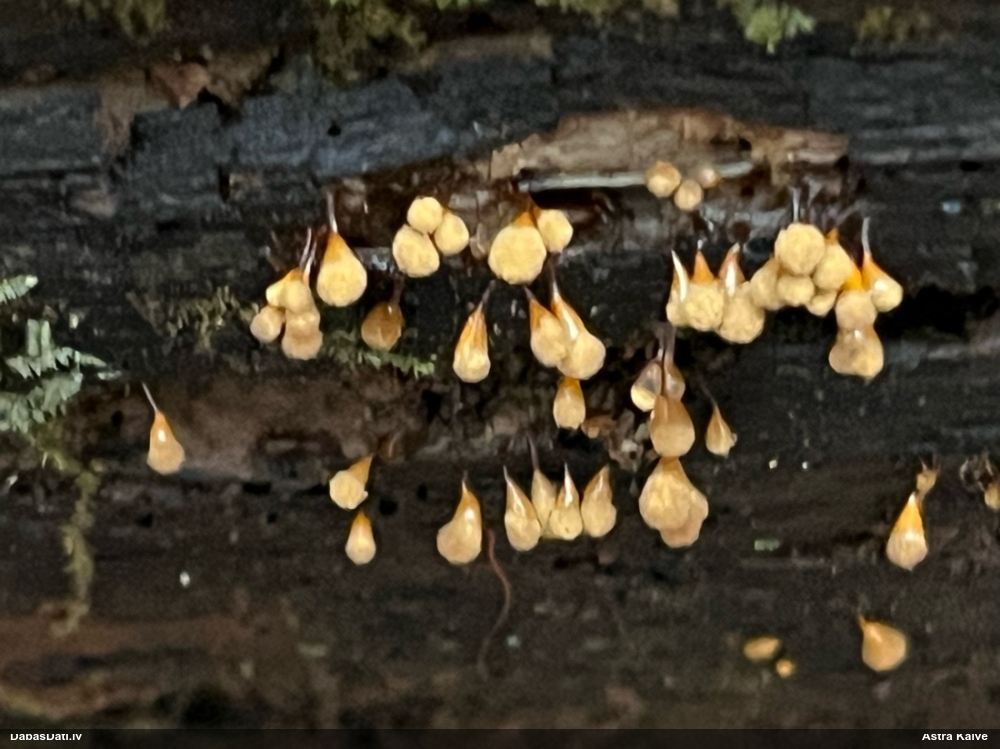 Jā, es par Tavu jau biju pieņēmusi lēmumu par Physarum oblatum, kam ir daudzveidīgas izpausmes, bet pirms gala vārda vēl paņēmu Maritas, kas šķita līdzīgs, bet ar baltu kāju, kas gan neiederētos pie oblatum. Nu un tā jūsu kopdarbs kopā ar Nannengu aizveda līdz rezultātam :)). Šitie dzeltenie ir Dievišķi no skata, bet velnišķīgi priekš noteikšanas.
