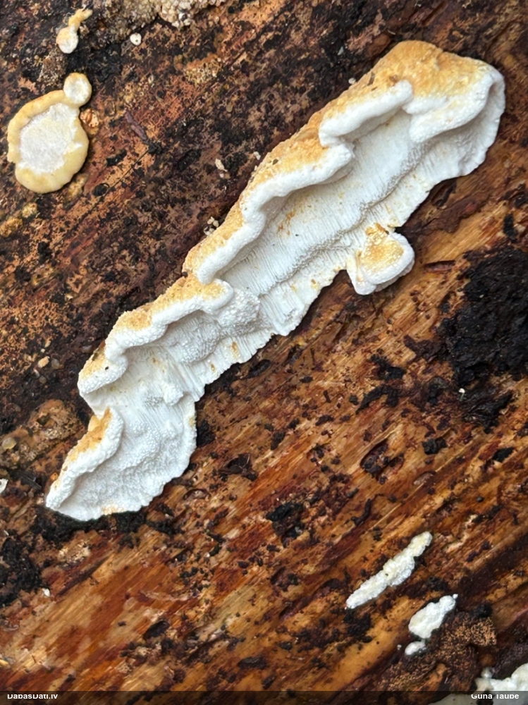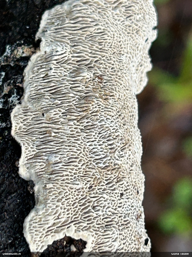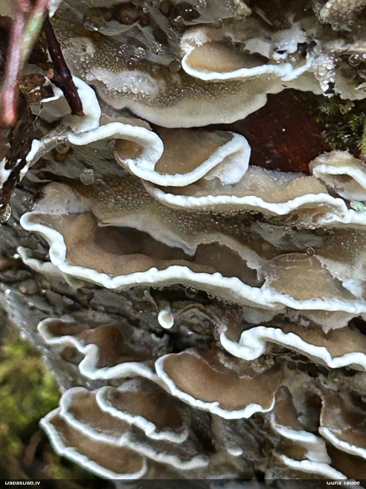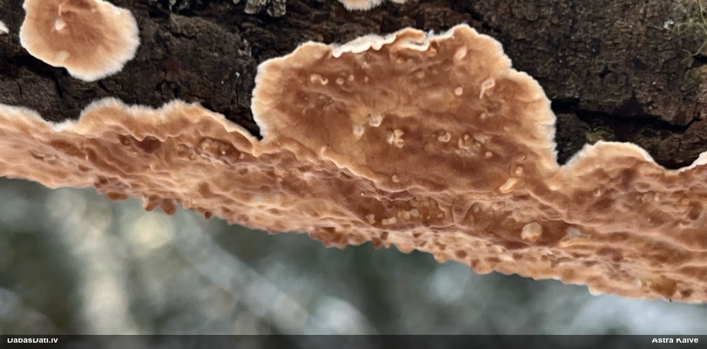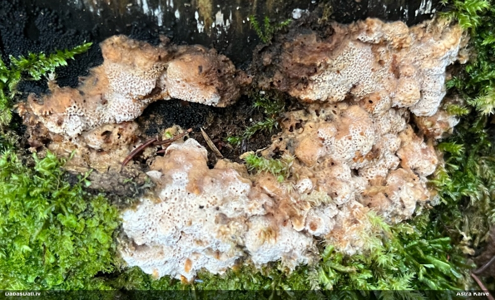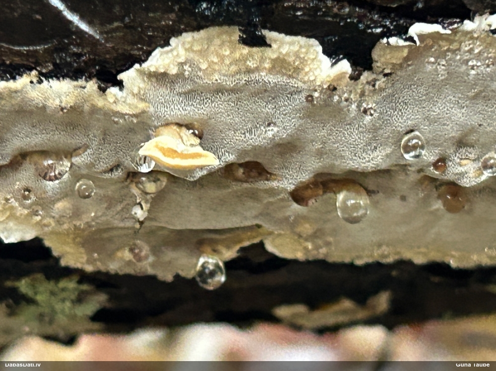 Atradu labu aprakstu. Tur teikts, ka P.diderma var būt kapilīcija mezgli, kas cieši salipuši, veidojot pseidokolumellu. Domāju, tā ir arī te. Rakstīts, ka aug arī uz mizas, neminot, vai dzīviem kokiem. Domāju, ka pretrunu nav, katrā ziņā šobrīd tā ir vienīgā un gana ticama versija.
