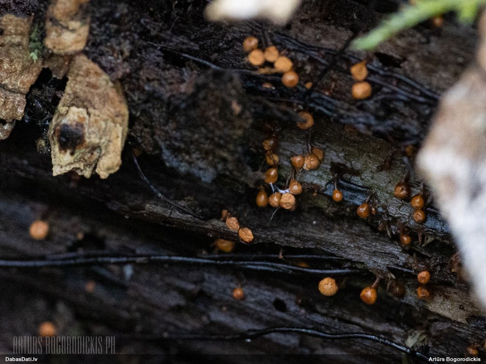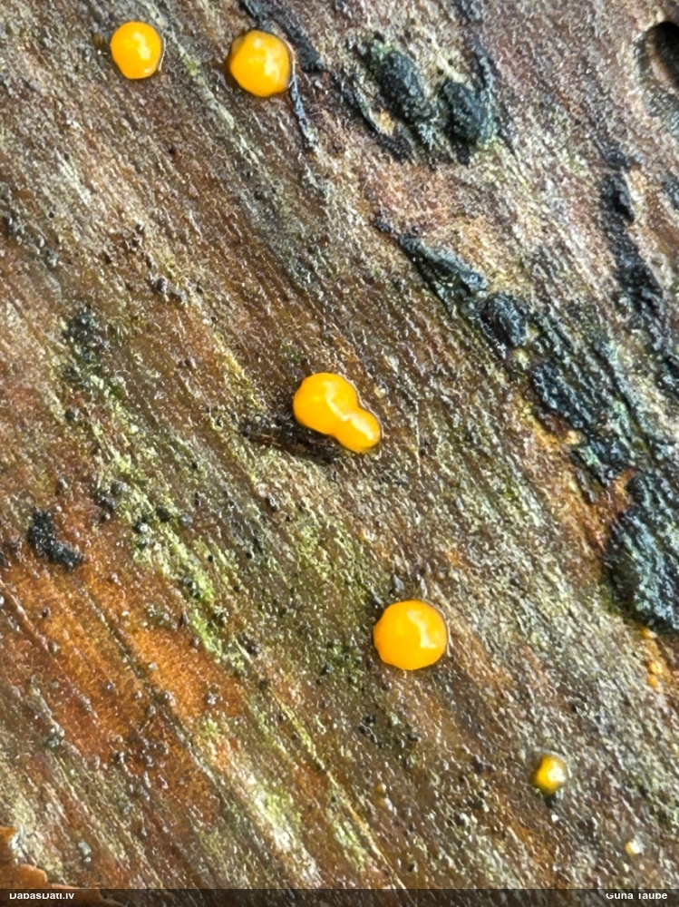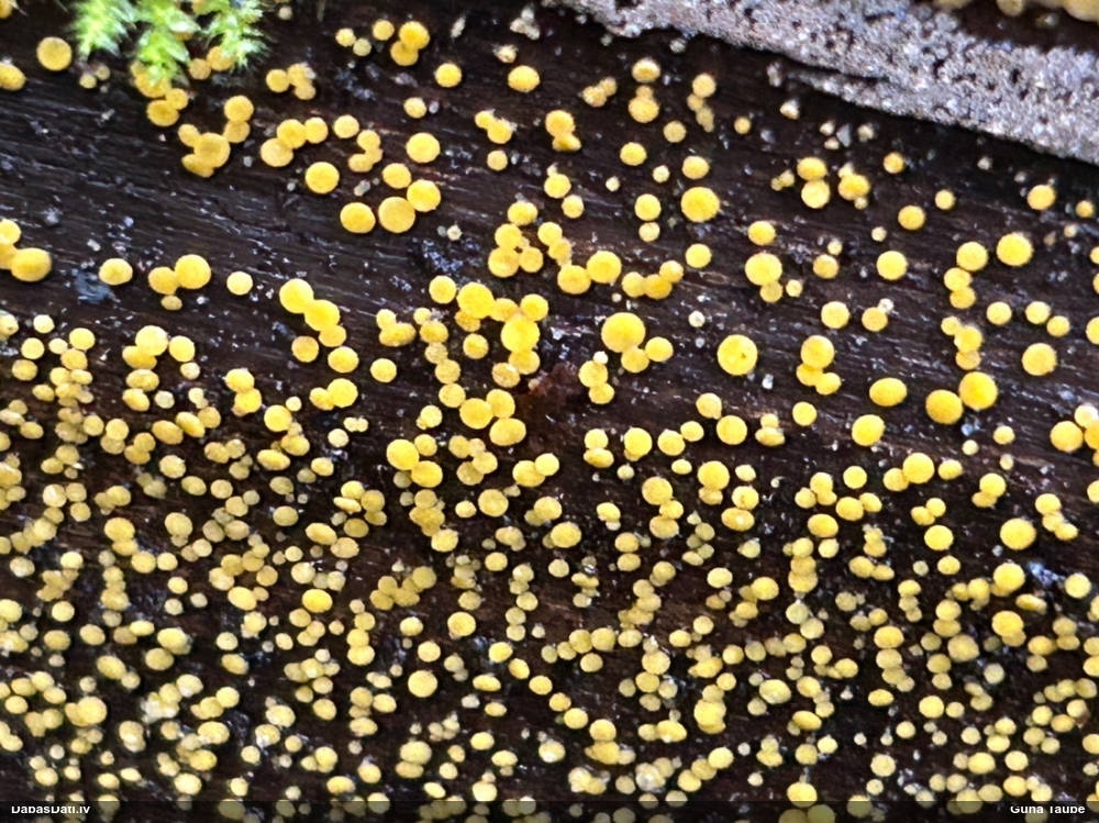 Jā, es par Tavu jau biju pieņēmusi lēmumu par Physarum oblatum, kam ir daudzveidīgas izpausmes, bet pirms gala vārda vēl paņēmu Maritas, kas šķita līdzīgs, bet ar baltu kāju, kas gan neiederētos pie oblatum. Nu un tā jūsu kopdarbs kopā ar Nannengu aizveda līdz rezultātam :)). Šitie dzeltenie ir Dievišķi no skata, bet velnišķīgi priekš noteikšanas.