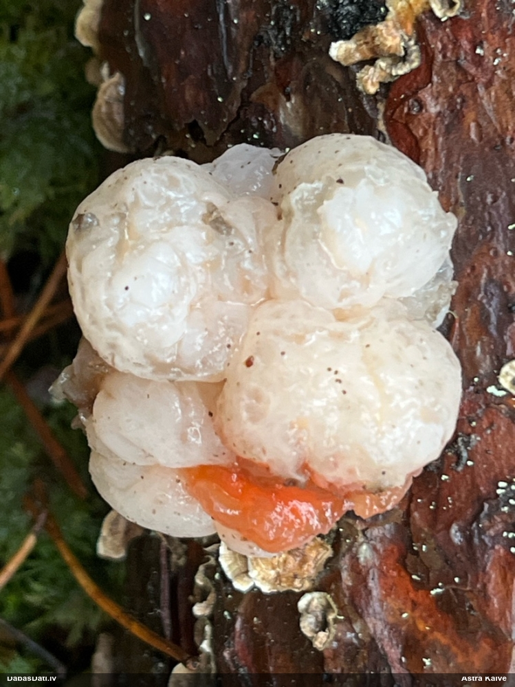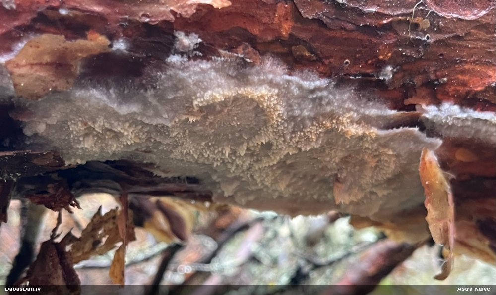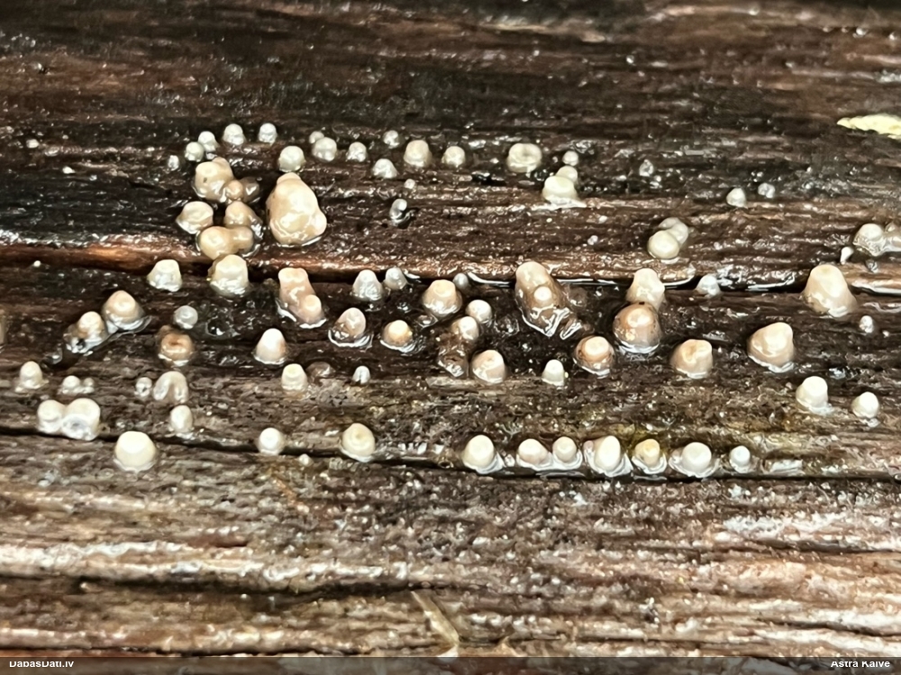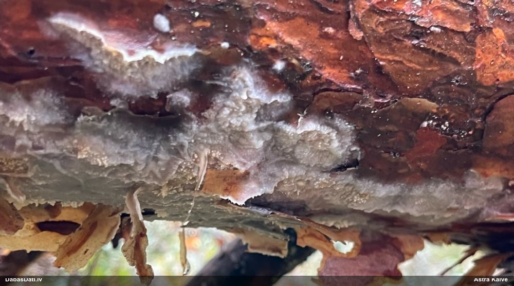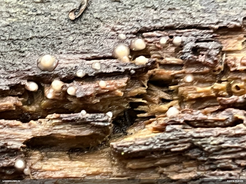 Atradu labu aprakstu. Tur teikts, ka P.diderma var būt kapilīcija mezgli, kas cieši salipuši, veidojot pseidokolumellu. Domāju, tā ir arī te. Rakstīts, ka aug arī uz mizas, neminot, vai dzīviem kokiem. Domāju, ka pretrunu nav, katrā ziņā šobrīd tā ir vienīgā un gana ticama versija.