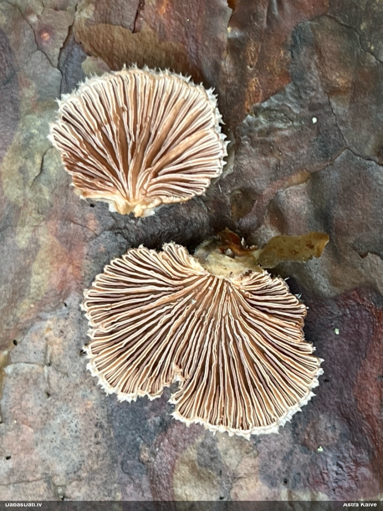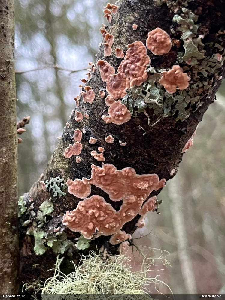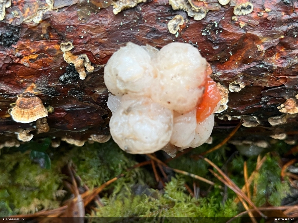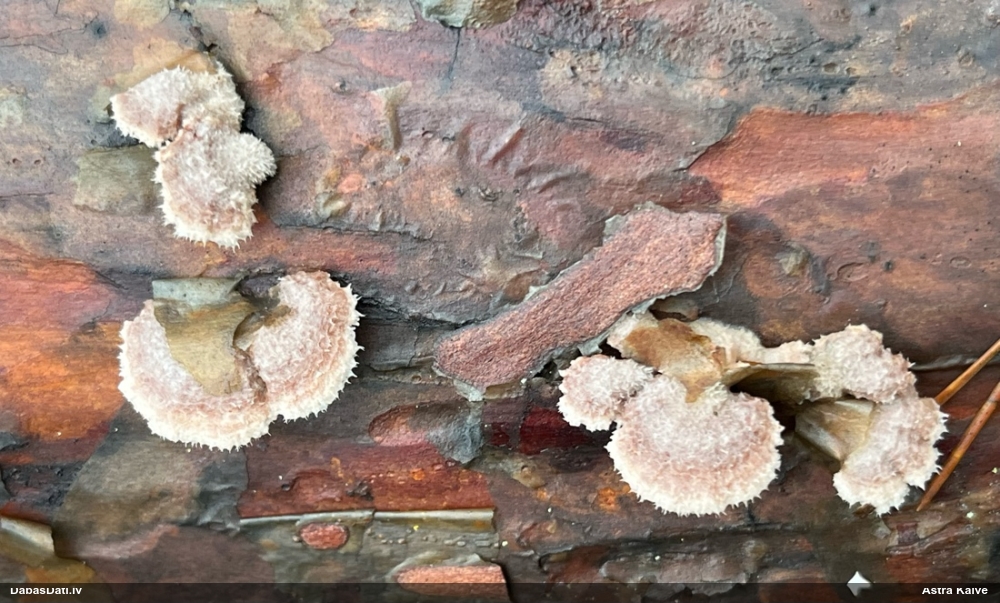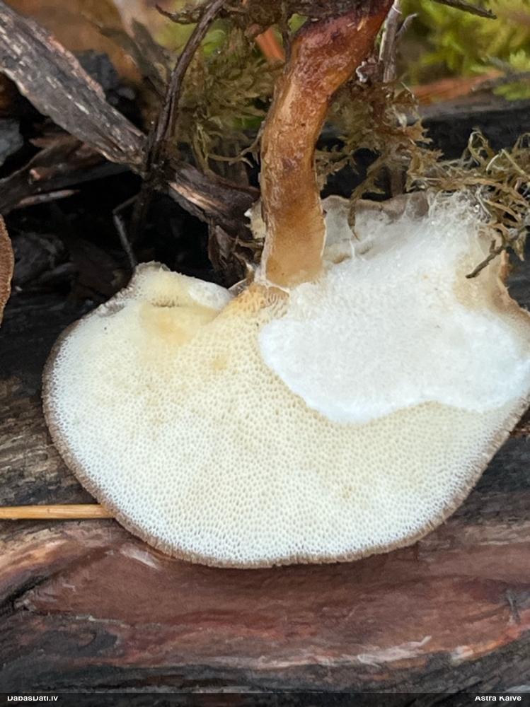 Atradu labu aprakstu. Tur teikts, ka P.diderma var būt kapilīcija mezgli, kas cieši salipuši, veidojot pseidokolumellu. Domāju, tā ir arī te. Rakstīts, ka aug arī uz mizas, neminot, vai dzīviem kokiem. Domāju, ka pretrunu nav, katrā ziņā šobrīd tā ir vienīgā un gana ticama versija.