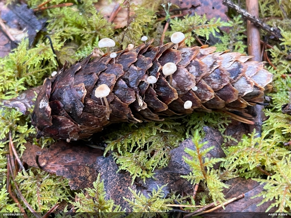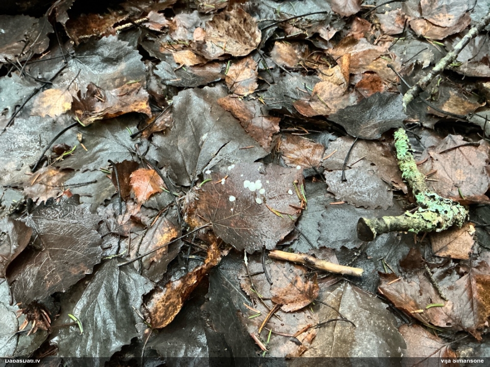 7.-9. bildes - pēc piecām dienām. Šobrīd diezgan izmirkusi. Julita, ja godīgi - man jau arī pirmā doma bija - nu ļoti atgādina olītes no Ķērpju meža :D. Un tikai otrā doma - šitajās Lielajās Apsēs parasti kombinācija "balts un nobirās" ir pārslainās cukurītes. Tas tā kā ticamāk. Nu un kaut kad vēlāk vēl radās trešā domā - bet neviens jau nav teicis, ka es te bieži klaiņojot nevarētu "ievazāt" kaut ko jaunu.. :D