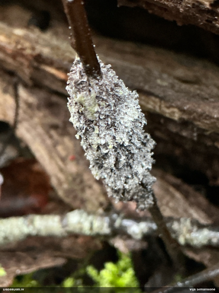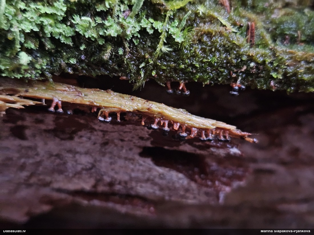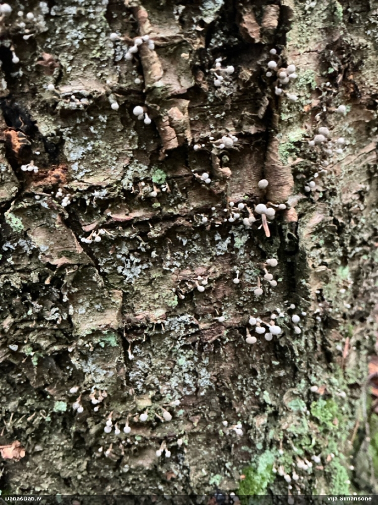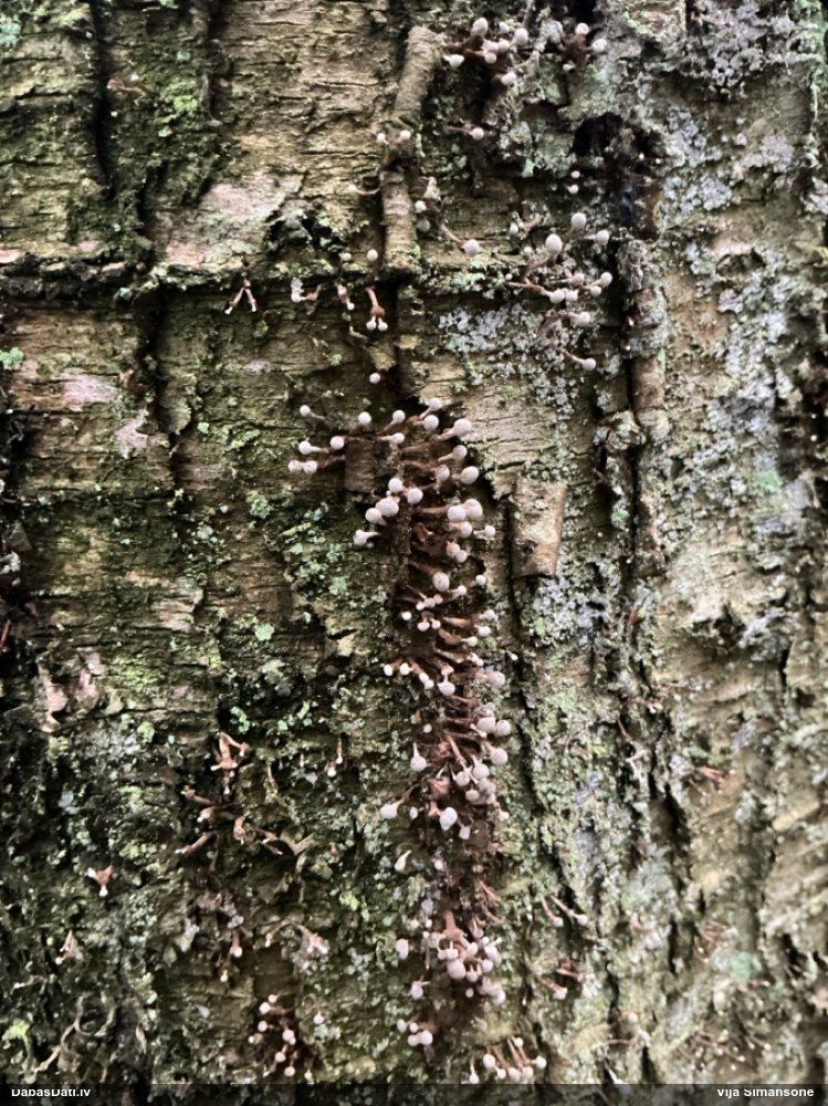 Atradu labu aprakstu. Tur teikts, ka P.diderma var būt kapilīcija mezgli, kas cieši salipuši, veidojot pseidokolumellu. Domāju, tā ir arī te. Rakstīts, ka aug arī uz mizas, neminot, vai dzīviem kokiem. Domāju, ka pretrunu nav, katrā ziņā šobrīd tā ir vienīgā un gana ticama versija.