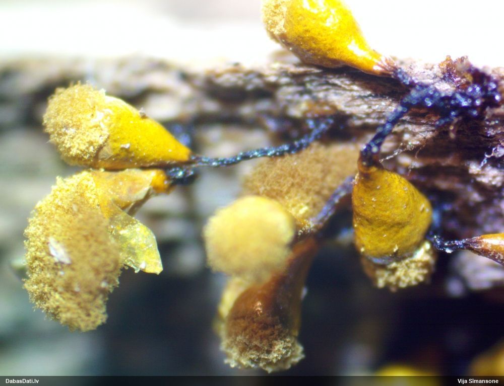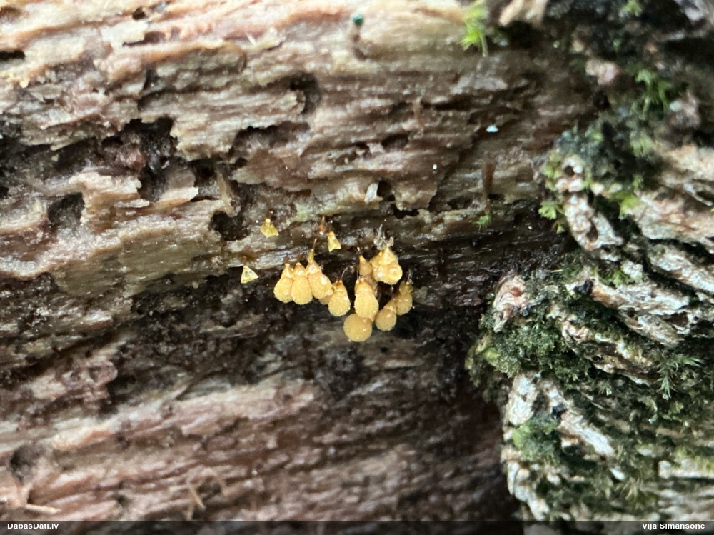 Jā, es par Tavu jau biju pieņēmusi lēmumu par Physarum oblatum, kam ir daudzveidīgas izpausmes, bet pirms gala vārda vēl paņēmu Maritas, kas šķita līdzīgs, bet ar baltu kāju, kas gan neiederētos pie oblatum. Nu un tā jūsu kopdarbs kopā ar Nannengu aizveda līdz rezultātam :)). Šitie dzeltenie ir Dievišķi no skata, bet velnišķīgi priekš noteikšanas.