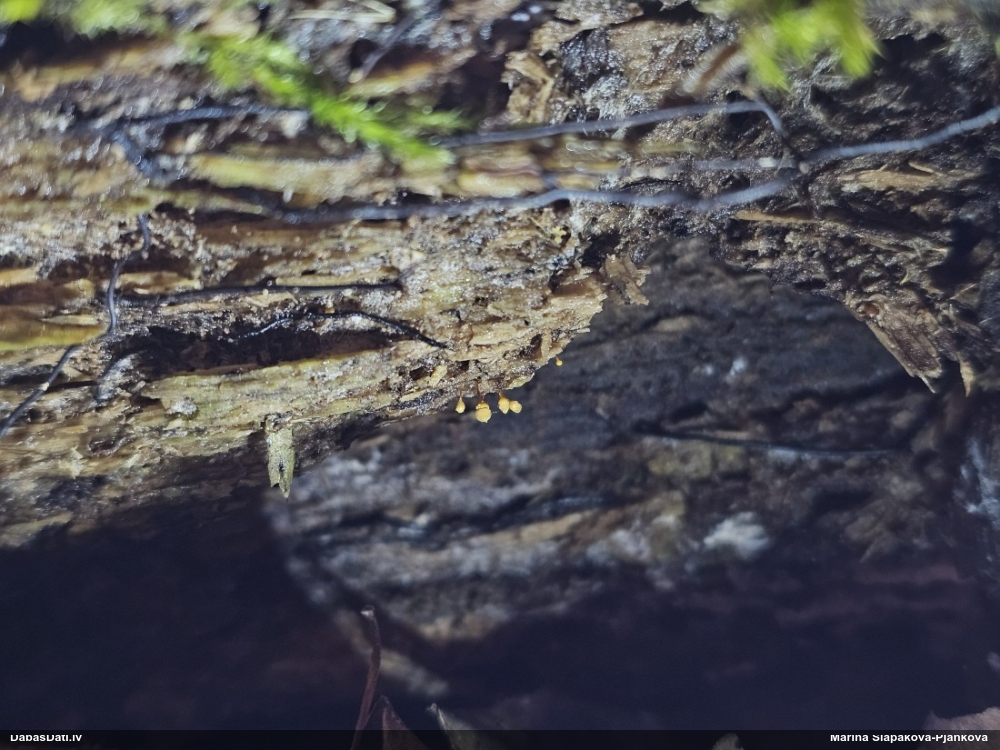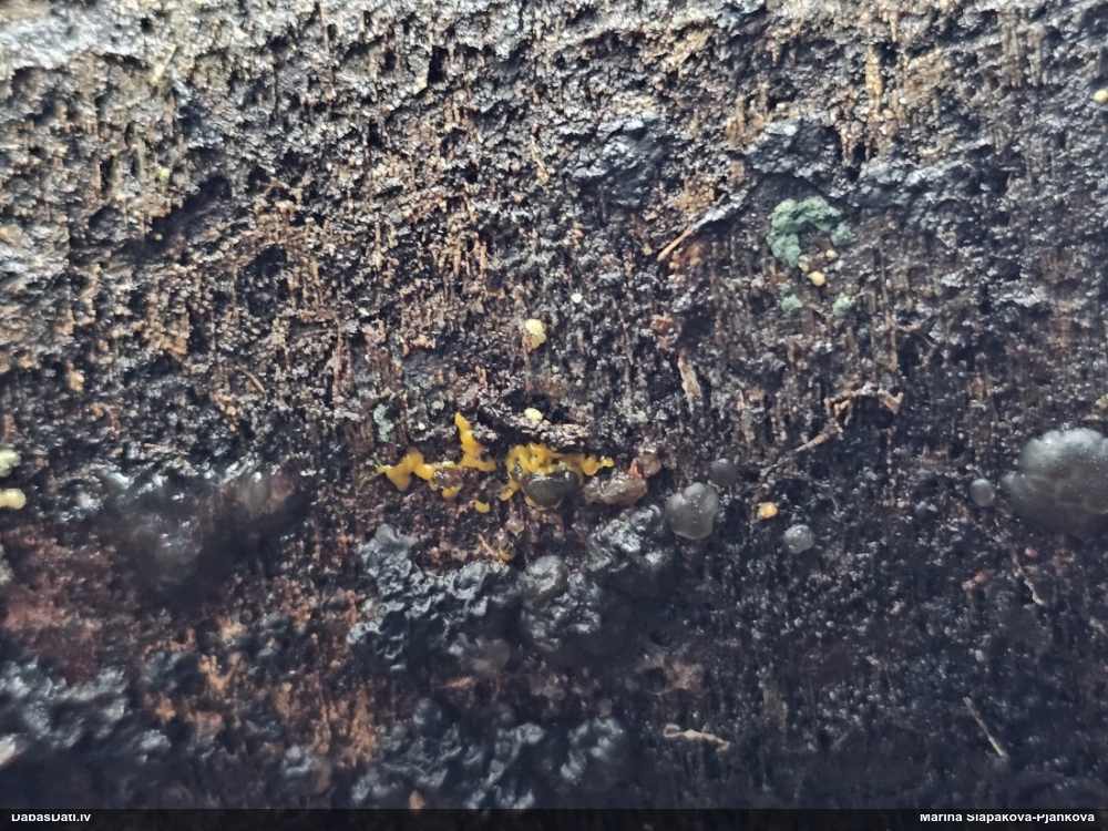 Jā, es par Tavu jau biju pieņēmusi lēmumu par Physarum oblatum, kam ir daudzveidīgas izpausmes, bet pirms gala vārda vēl paņēmu Maritas, kas šķita līdzīgs, bet ar baltu kāju, kas gan neiederētos pie oblatum. Nu un tā jūsu kopdarbs kopā ar Nannengu aizveda līdz rezultātam :)). Šitie dzeltenie ir Dievišķi no skata, bet velnišķīgi priekš noteikšanas.