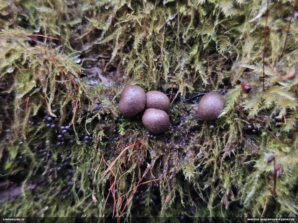 Nebija laika līdz galam rūpīgi izpētīt, bet P.diderma ir ticama versija (sporas mazliet lielākas, ja nav nobriedusi pilnvērtīgi), ja neskaita pseido/kolumellu - tāpēc papētīšu vēlāk vēl. Physarum ir noteikti.