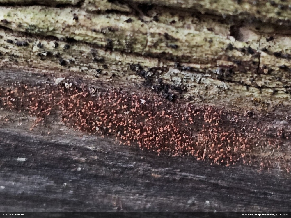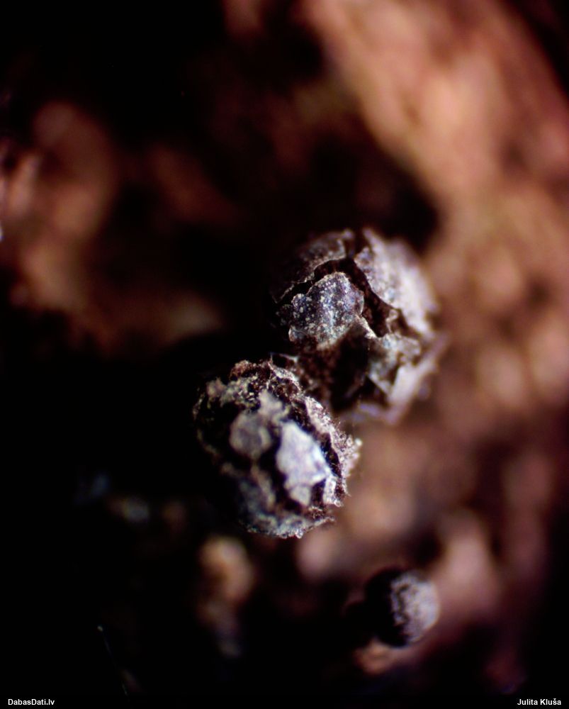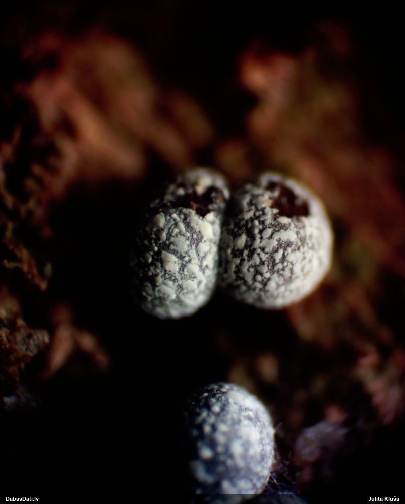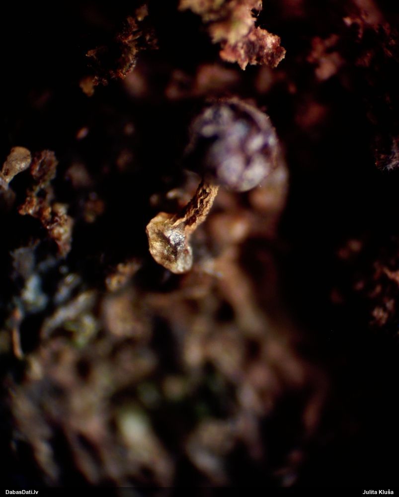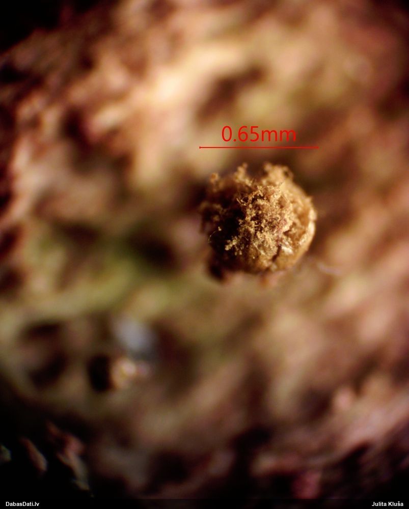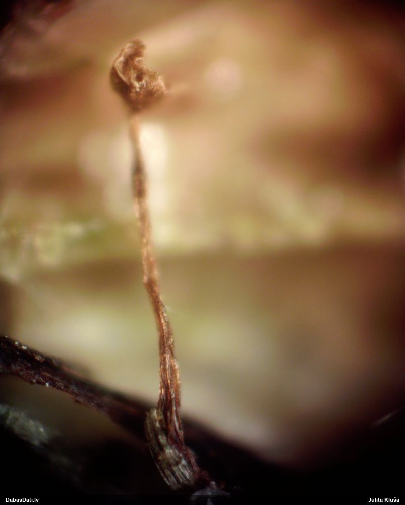 Atradu labu aprakstu. Tur teikts, ka P.diderma var būt kapilīcija mezgli, kas cieši salipuši, veidojot pseidokolumellu. Domāju, tā ir arī te. Rakstīts, ka aug arī uz mizas, neminot, vai dzīviem kokiem. Domāju, ka pretrunu nav, katrā ziņā šobrīd tā ir vienīgā un gana ticama versija.