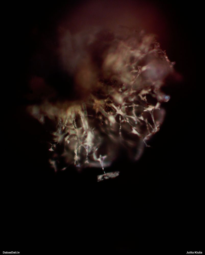 Tīkliņš šķiet daļējs, vispār bija grūti noķert to fokusā, bet varbūt tā vienkārši ir mikroskopēšanas vaina.