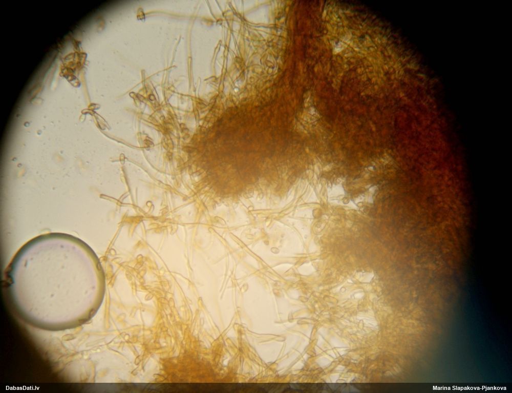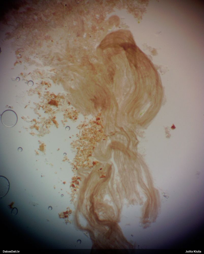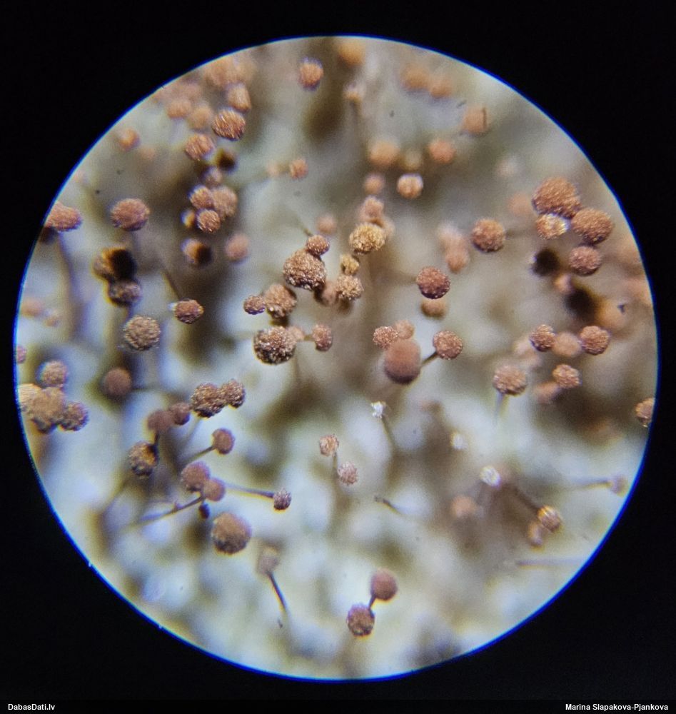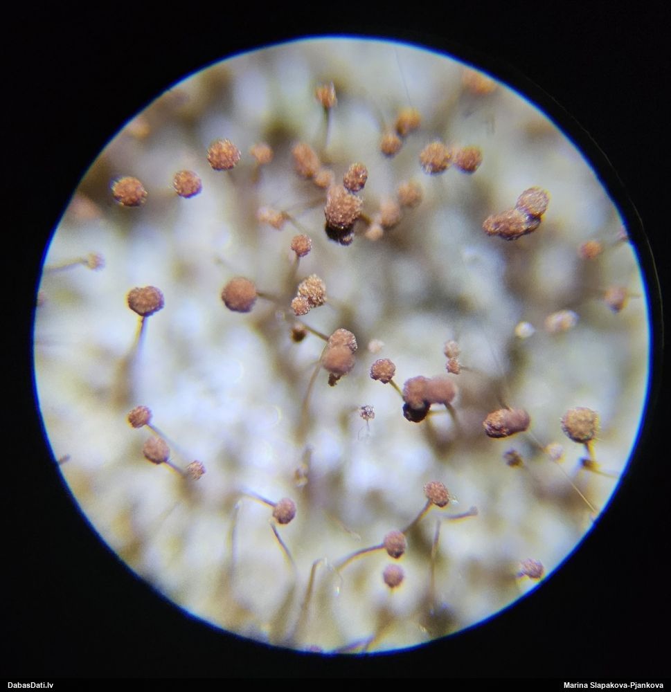 Šis bija neparasts paraugs. Noklāts ar biezu pelējuma kārtu un likās bezcerīgs vai vispār nav gļotsēne. Mikroskopija rādīja nepārprotamas gļotsēņu sporas. Šketinot tālāk, varēja tikt pat līdz jaunai sugai.