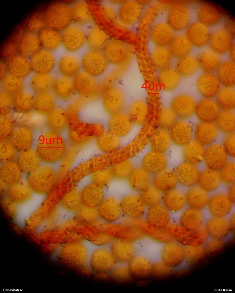 Tomēr pēc foto ar sporām man ir jautājums, vai mazākās sporas tiešām ir virs 12 mkm? Jo foto izskatās, ka ir arī mazākas, bet tās nav mērītas.