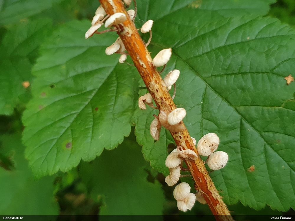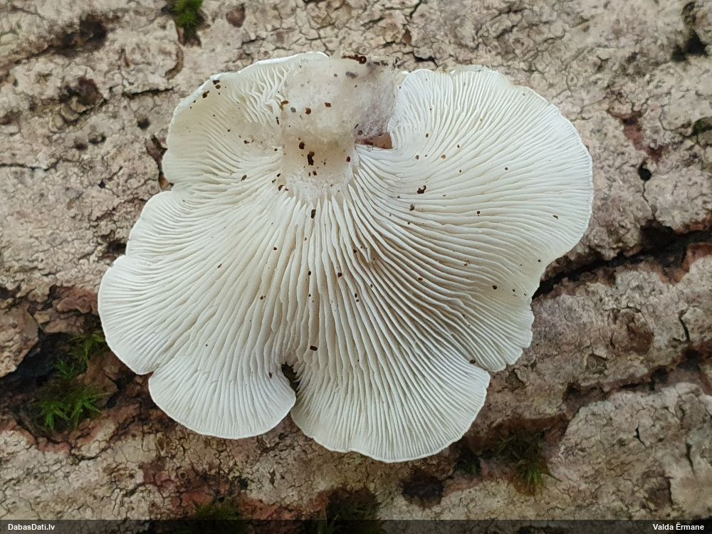 Atradu labu aprakstu. Tur teikts, ka P.diderma var būt kapilīcija mezgli, kas cieši salipuši, veidojot pseidokolumellu. Domāju, tā ir arī te. Rakstīts, ka aug arī uz mizas, neminot, vai dzīviem kokiem. Domāju, ka pretrunu nav, katrā ziņā šobrīd tā ir vienīgā un gana ticama versija.