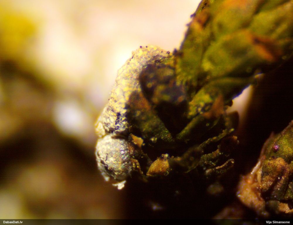 Marita, reizēm mikroskopijā jau bija radusies sajūta, ka "nobirušas kārpas", jo dīvaini punktiņi, bet sākumā tas tā nenopietni šķita, vēlāk sapratu, ka varētu būt nopietni. Bet ka to izmanto kā pazīmi noteikšanai - to gan redzēju pirmoreiz! Licea minima arī tā esot, tāpēc šīs sugas varētu būt radnieciskas. To gan vēl neķēros pārbaudīt, man šodien kriksīšu jau pietiek. ;)