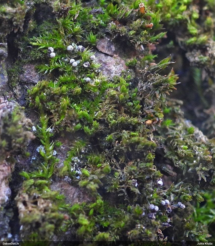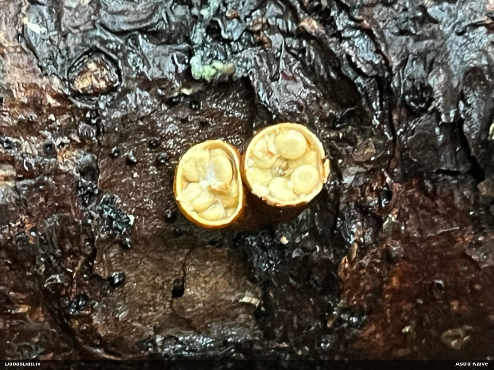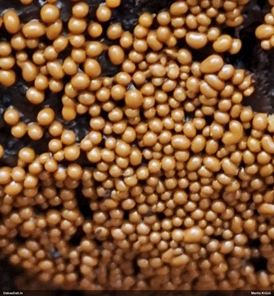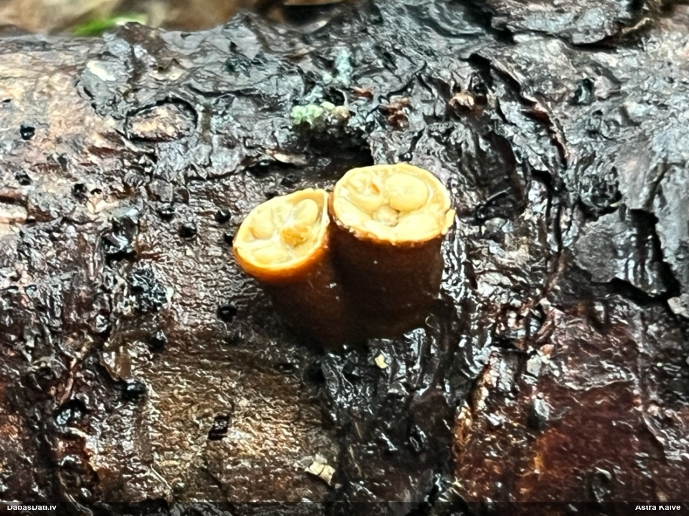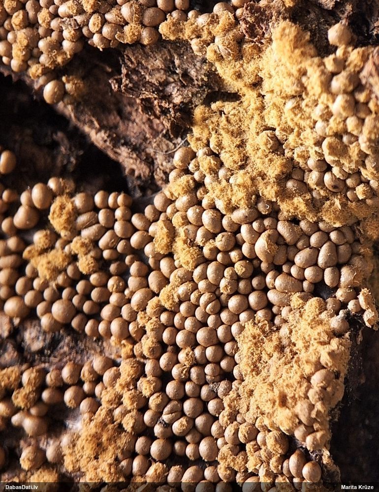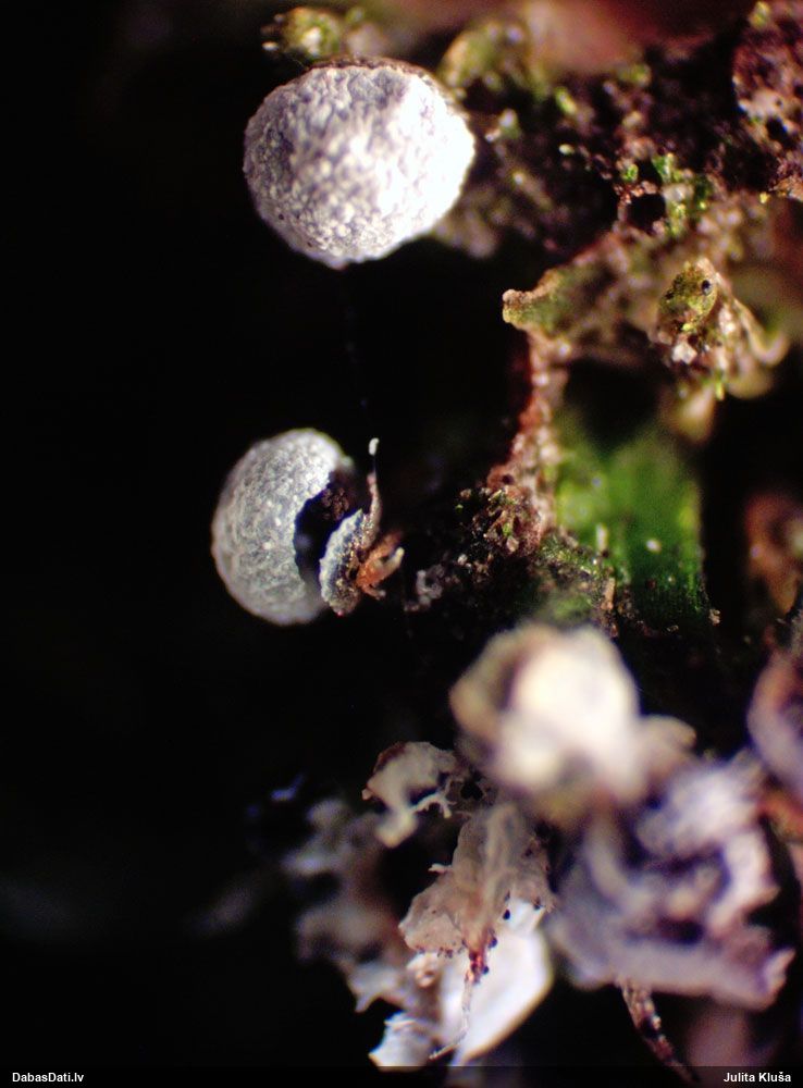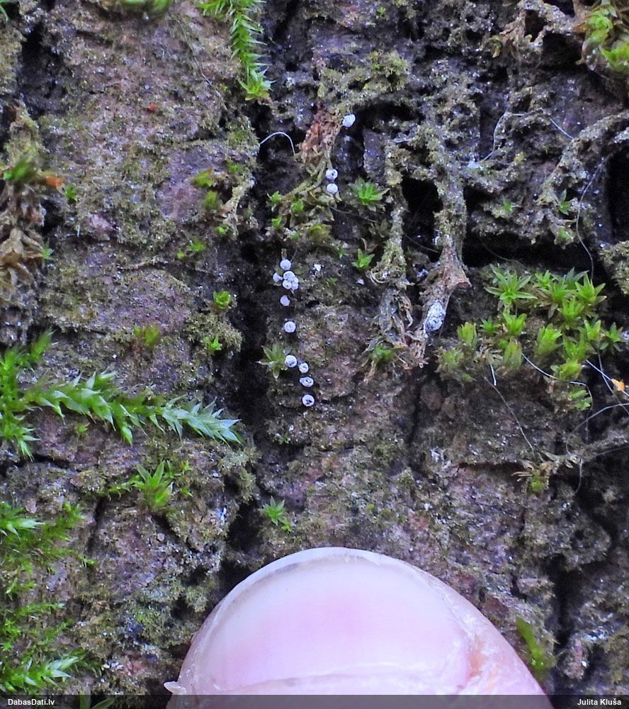 Atradu labu aprakstu. Tur teikts, ka P.diderma var būt kapilīcija mezgli, kas cieši salipuši, veidojot pseidokolumellu. Domāju, tā ir arī te. Rakstīts, ka aug arī uz mizas, neminot, vai dzīviem kokiem. Domāju, ka pretrunu nav, katrā ziņā šobrīd tā ir vienīgā un gana ticama versija.