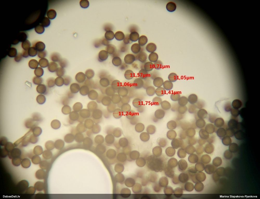 Tomēr pēc foto ar sporām man ir jautājums, vai mazākās sporas tiešām ir virs 12 mkm? Jo foto izskatās, ka ir arī mazākas, bet tās nav mērītas.