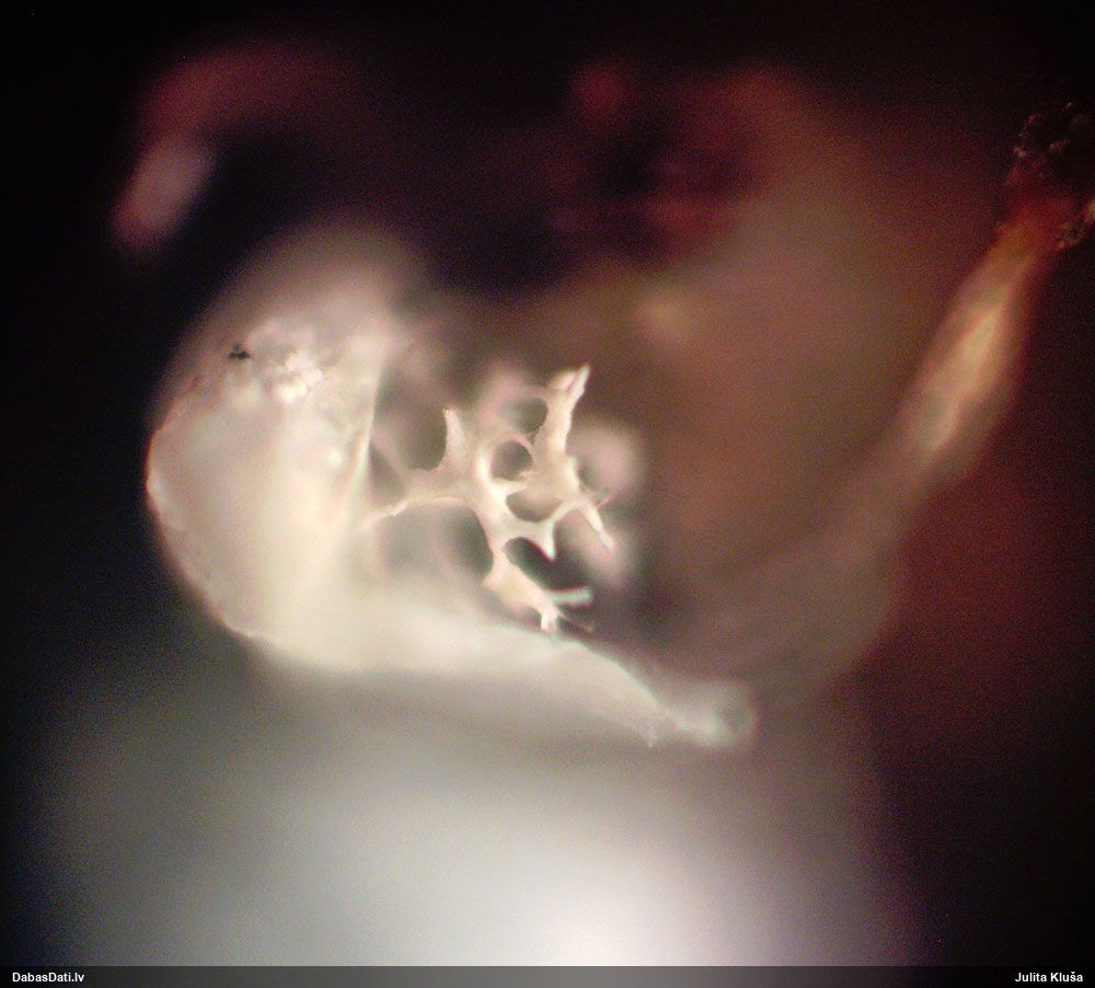 Tīkliņš šķiet daļējs, vispār bija grūti noķert to fokusā, bet varbūt tā vienkārši ir mikroskopēšanas vaina.