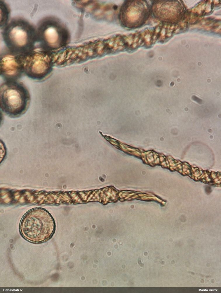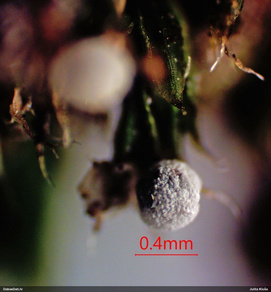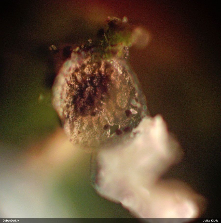 Marita, reizēm mikroskopijā jau bija radusies sajūta, ka "nobirušas kārpas", jo dīvaini punktiņi, bet sākumā tas tā nenopietni šķita, vēlāk sapratu, ka varētu būt nopietni. Bet ka to izmanto kā pazīmi noteikšanai - to gan redzēju pirmoreiz! Licea minima arī tā esot, tāpēc šīs sugas varētu būt radnieciskas. To gan vēl neķēros pārbaudīt, man šodien kriksīšu jau pietiek. ;)