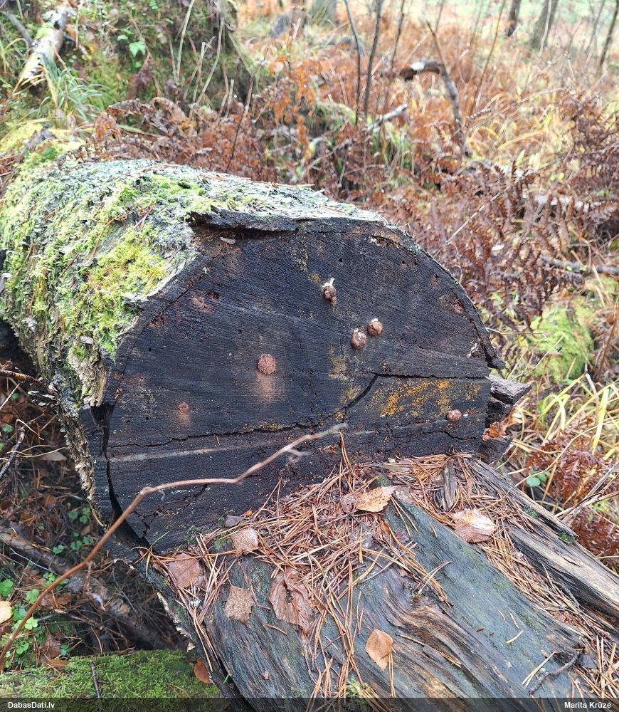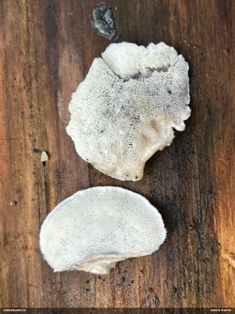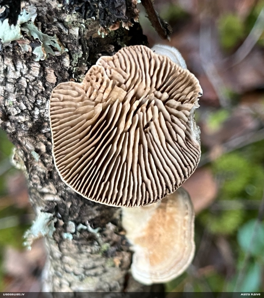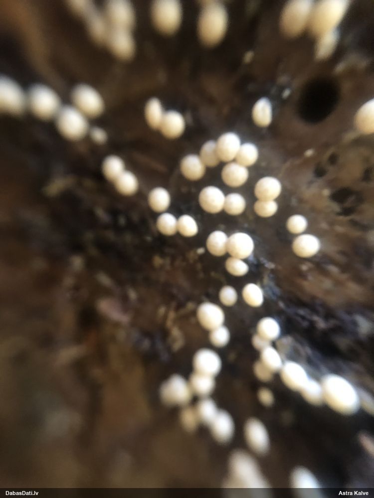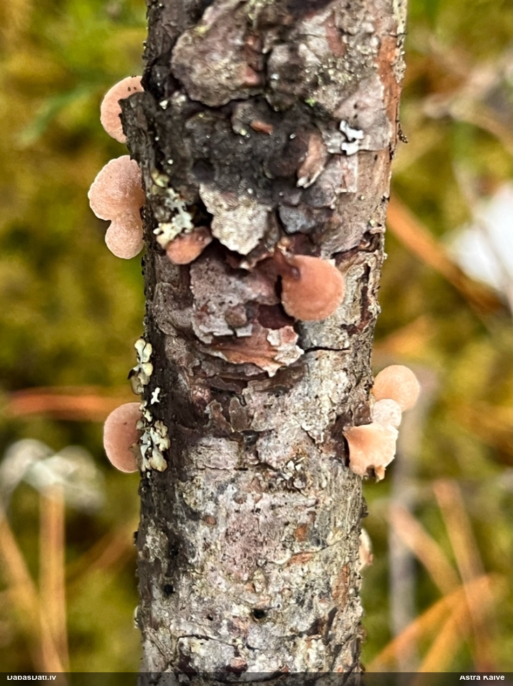 Atradu labu aprakstu. Tur teikts, ka P.diderma var būt kapilīcija mezgli, kas cieši salipuši, veidojot pseidokolumellu. Domāju, tā ir arī te. Rakstīts, ka aug arī uz mizas, neminot, vai dzīviem kokiem. Domāju, ka pretrunu nav, katrā ziņā šobrīd tā ir vienīgā un gana ticama versija.