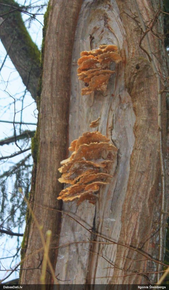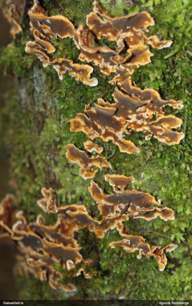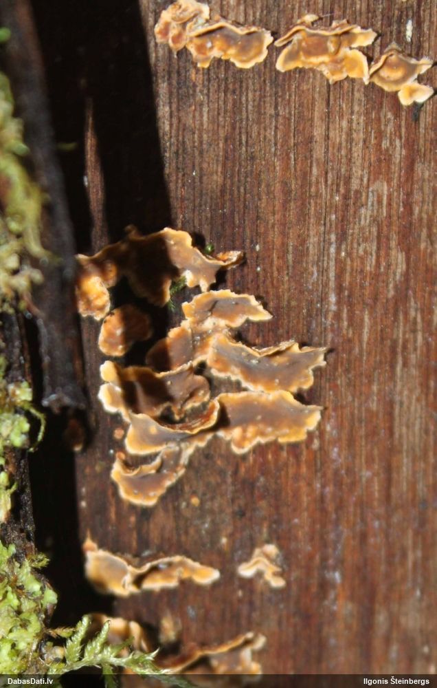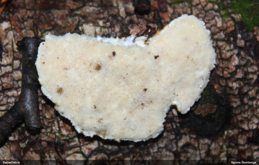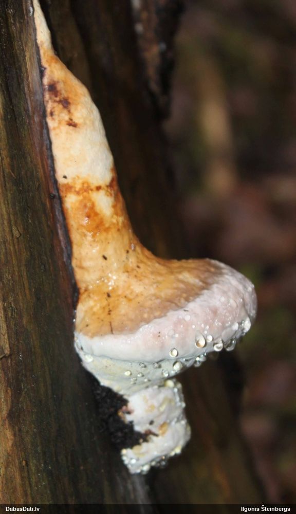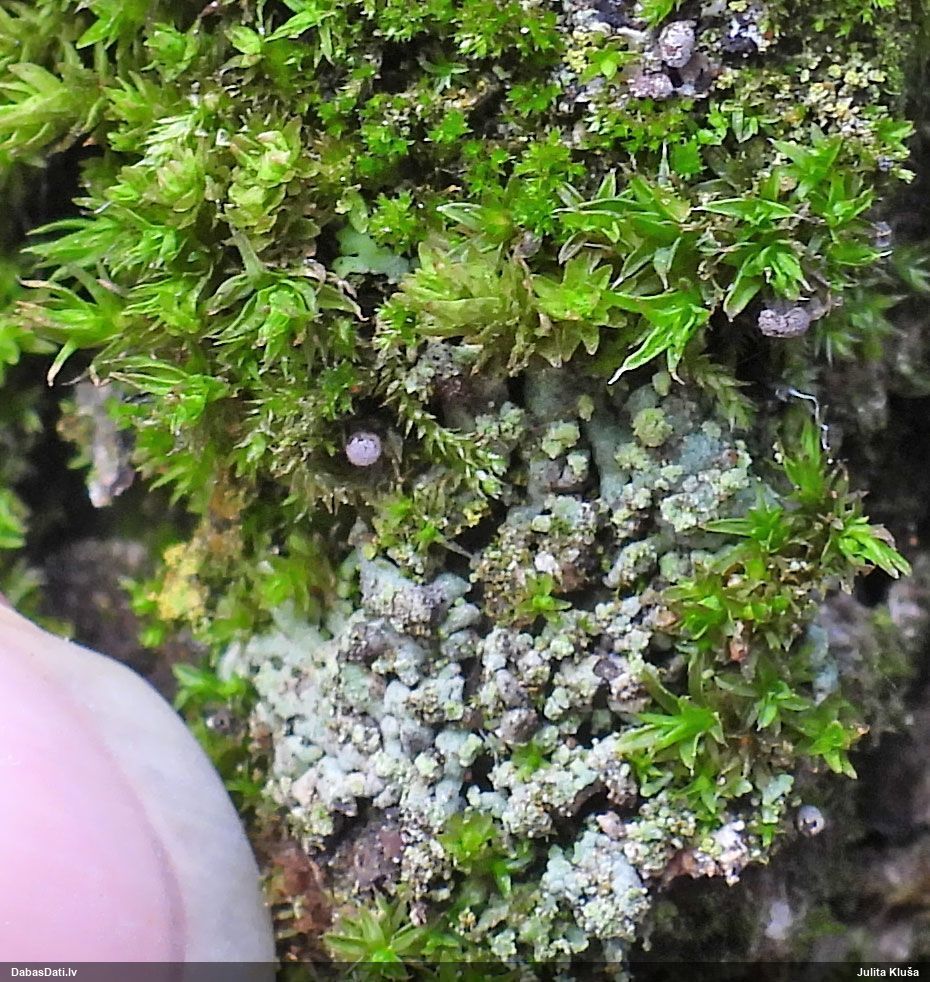 Atradu labu aprakstu. Tur teikts, ka P.diderma var būt kapilīcija mezgli, kas cieši salipuši, veidojot pseidokolumellu. Domāju, tā ir arī te. Rakstīts, ka aug arī uz mizas, neminot, vai dzīviem kokiem. Domāju, ka pretrunu nav, katrā ziņā šobrīd tā ir vienīgā un gana ticama versija.