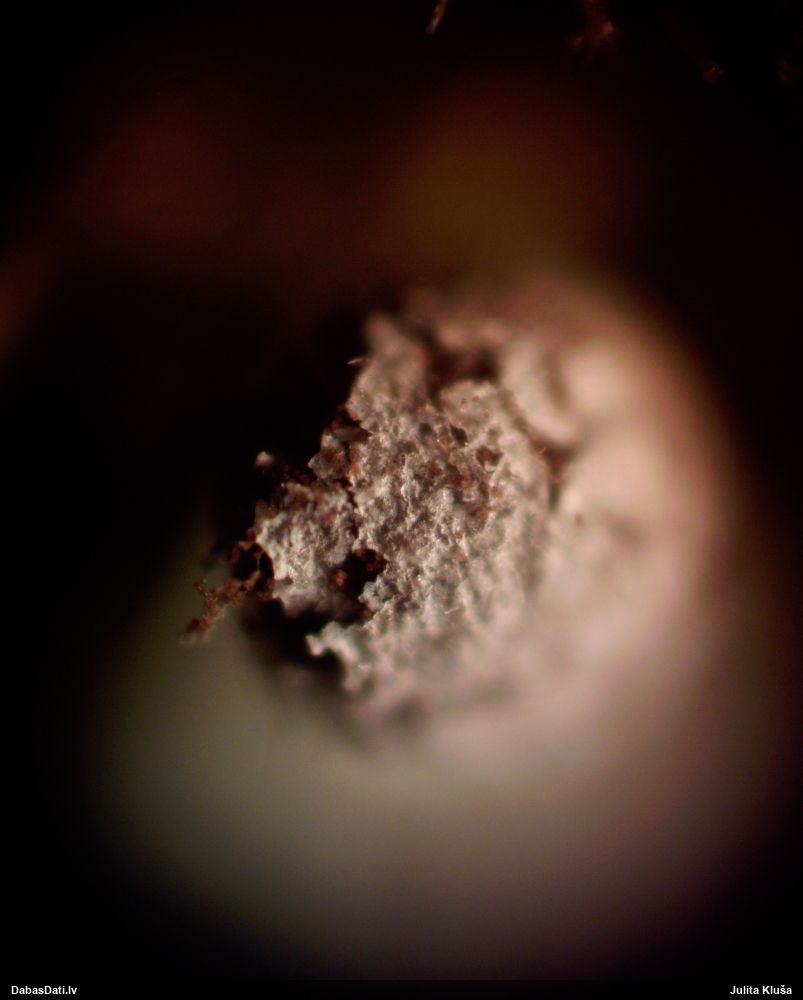 Marita, reizēm mikroskopijā jau bija radusies sajūta, ka "nobirušas kārpas", jo dīvaini punktiņi, bet sākumā tas tā nenopietni šķita, vēlāk sapratu, ka varētu būt nopietni. Bet ka to izmanto kā pazīmi noteikšanai - to gan redzēju pirmoreiz! Licea minima arī tā esot, tāpēc šīs sugas varētu būt radnieciskas. To gan vēl neķēros pārbaudīt, man šodien kriksīšu jau pietiek. ;)