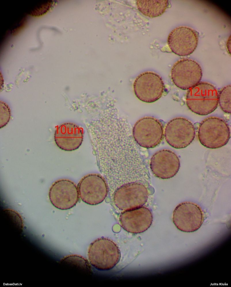 Tomēr pēc foto ar sporām man ir jautājums, vai mazākās sporas tiešām ir virs 12 mkm? Jo foto izskatās, ka ir arī mazākas, bet tās nav mērītas.