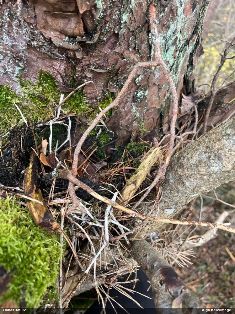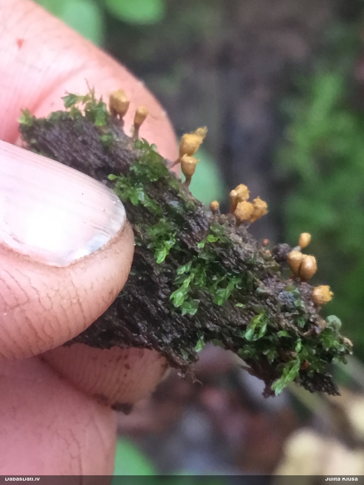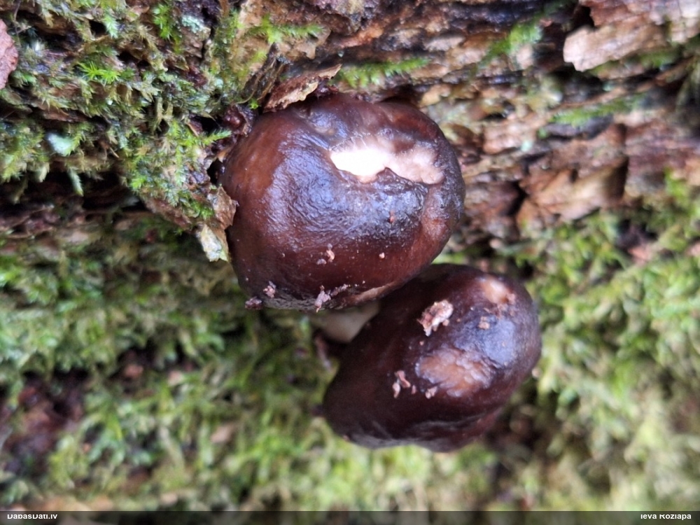 Atradu labu aprakstu. Tur teikts, ka P.diderma var būt kapilīcija mezgli, kas cieši salipuši, veidojot pseidokolumellu. Domāju, tā ir arī te. Rakstīts, ka aug arī uz mizas, neminot, vai dzīviem kokiem. Domāju, ka pretrunu nav, katrā ziņā šobrīd tā ir vienīgā un gana ticama versija.