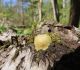 Man pēkšņi radās ideja - vai tur bija nu ļoti mitrs mikroklimats, egle ar melnalksni? Hipotētiski tādas dzeltenas var būt Diachea muscorum. Te bilde ir mazliet līdzīga: https://fr.wikipedia.org/wiki/Fichier:Craterium_muscorum,_Trawscoed,_North_Wales,_Aug_2016_-_Flickr_-_janetgraham84.jpg