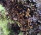 Satrūdējusi kritala mežā, nav dēļi. Iespējams, egle, jauktu koku mežs.